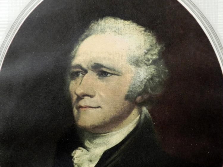 THIS IS A VINTAGE ALEXANDER HAMILTON FRAMED PRINT. IT IS 8 3/4 X 10 3/4" WITH AN EAGLE ON TOP AND A FACSIMILE AUTOGRAPH ON BOTTOM. THE FRAMED PRINT IS IN GOOD CONDITION WITH A METAL BAR/HOOK FOR HANGING ON THE BACK.