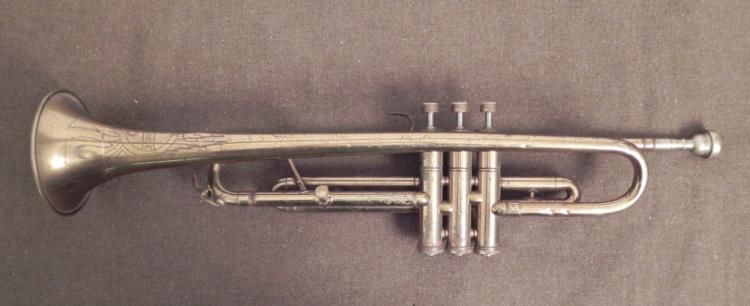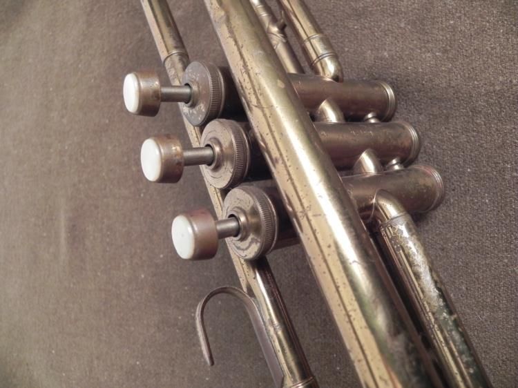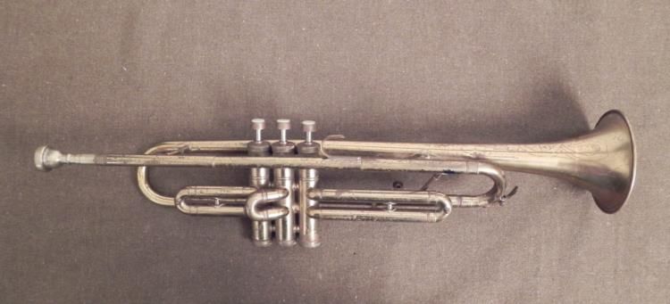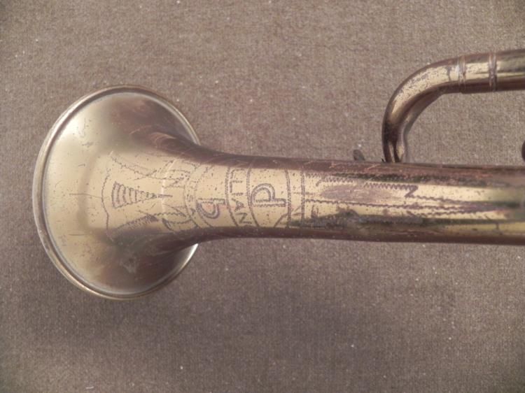 VINTAGE "ALLIANCE" TRUMPET-ENGRAVED WELL MADE OLD TRUMPET-ENGRAVED D B ALLIANCE-USA--ELABORATE ENGRAVING ON UPPER BELL--VALVE #2 STICKS AND VALVES NEED A TUNE UP--MOTHER OF PEARL TOPS--SERIAL # 63726--MOUTHPIECE READS 7C-VINCENT BACHCORP-MOUNT VERNON NY--