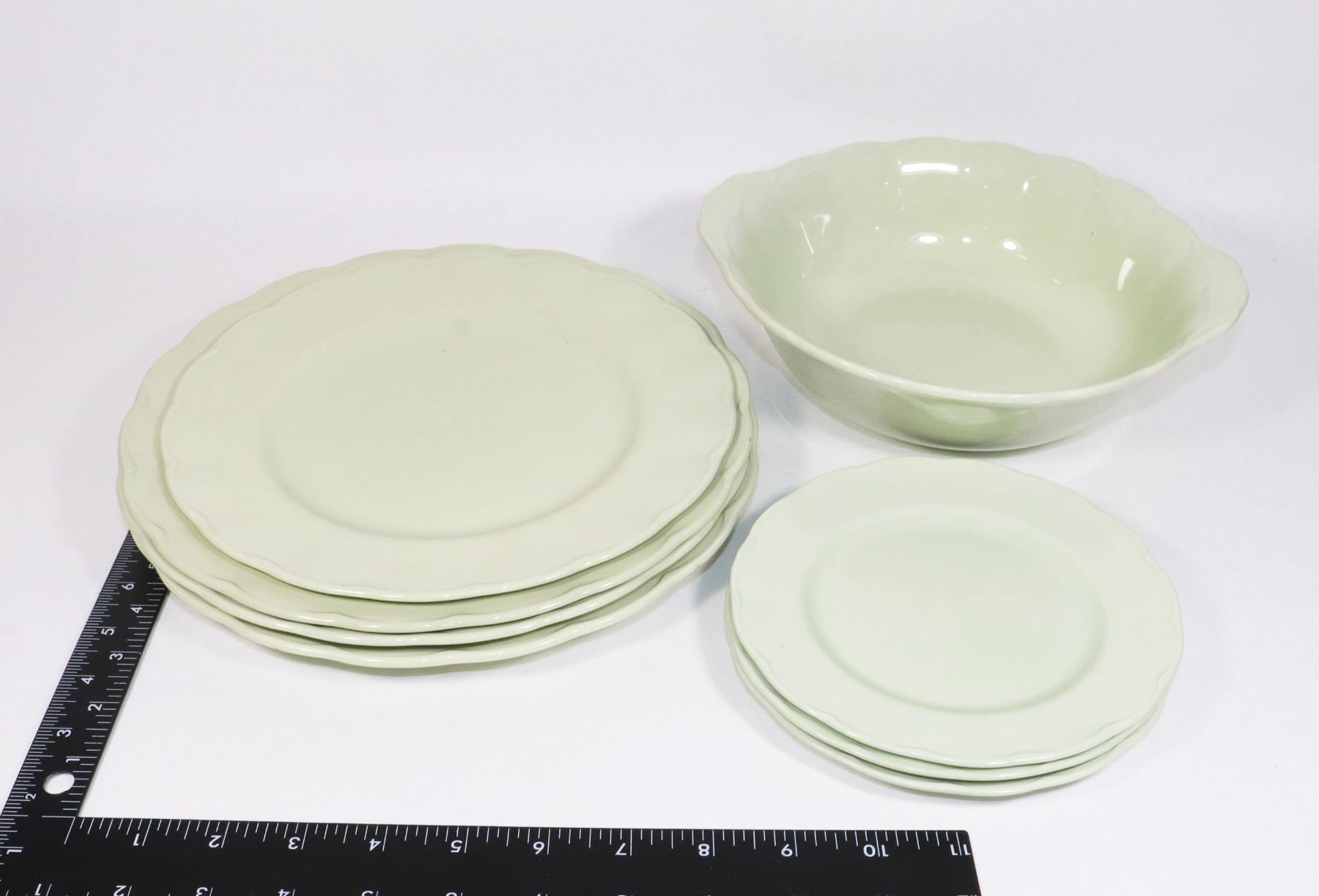 3 DINNER PLATES, 1 PLATE, 3 BREAD AND BUTTER