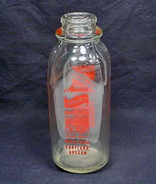 VINTAGE ALPENROSE DAIRY GLASS ADVERTISING MILK BOTTLE - Approx. 7" tall. Portland, Oregon.