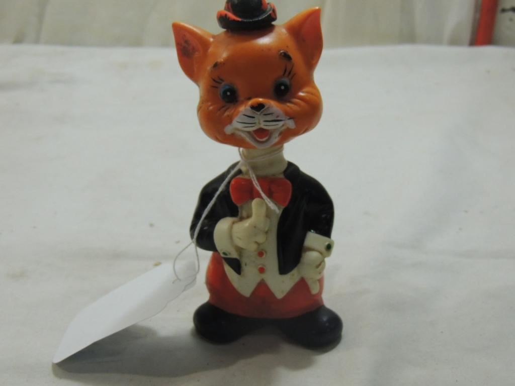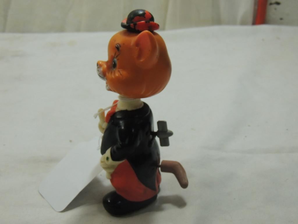 VINTAGE 1960s ALPS WIGGLE WAGGLE WIND UP TOY ORANGE CAT IN TUXEDO TAIL AND BOW TIE, COLLECTIBLE VINTAGE TOY, WINDUP TOY, VINTAGE TOY, AS SHOWN SEE PHOTO FOR MORE DETAILS.