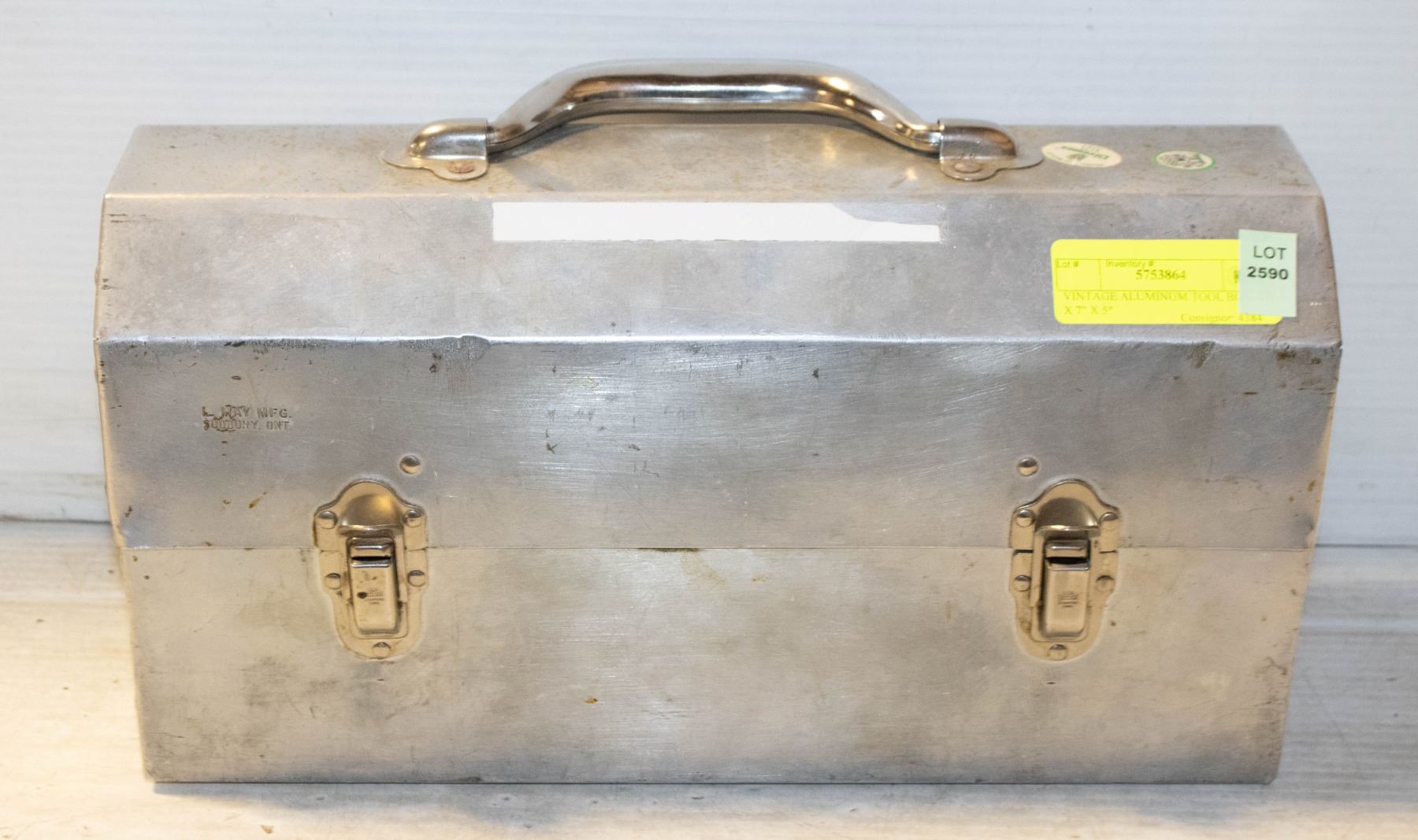 VINTAGE ALUMINUM TOOL BOX- 14" X 7" X 5"