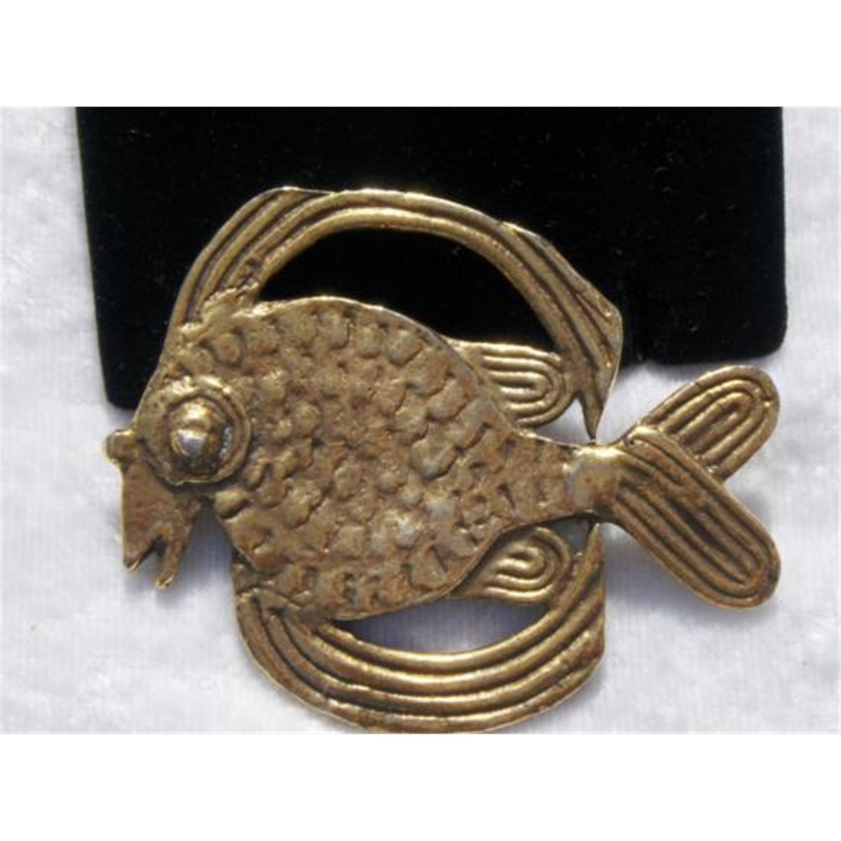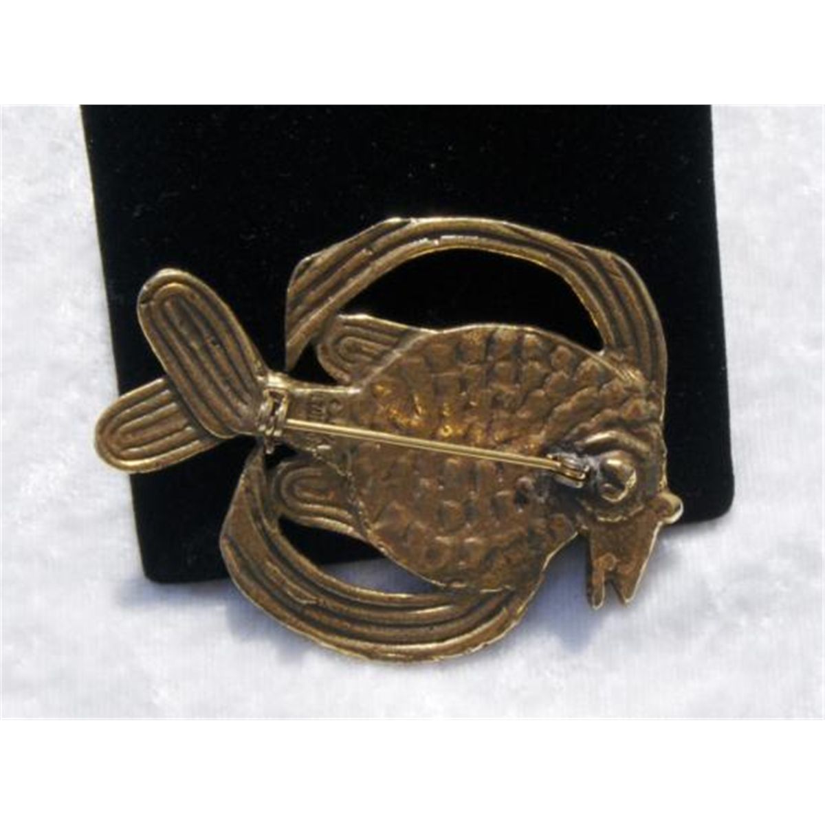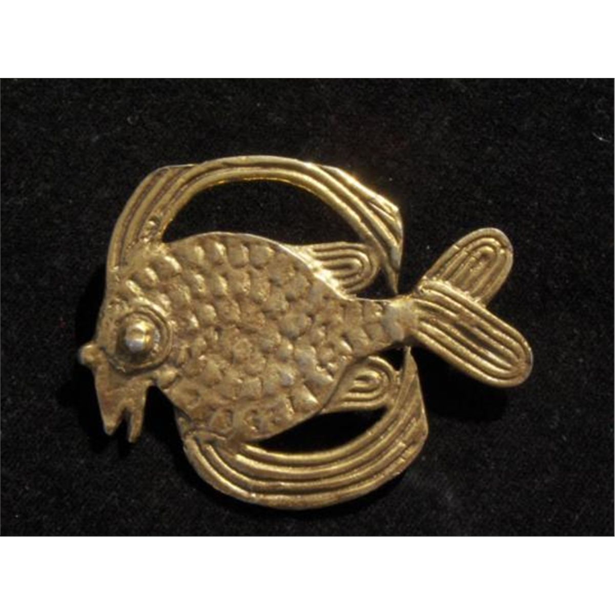 VINTAGE ALVA MUSEUM AZTEC FISH DESIGN BROOCH, Signed Alva Studios, Brass tone, Measures:2 1/4IN by 1 3/4IN, MWF1842