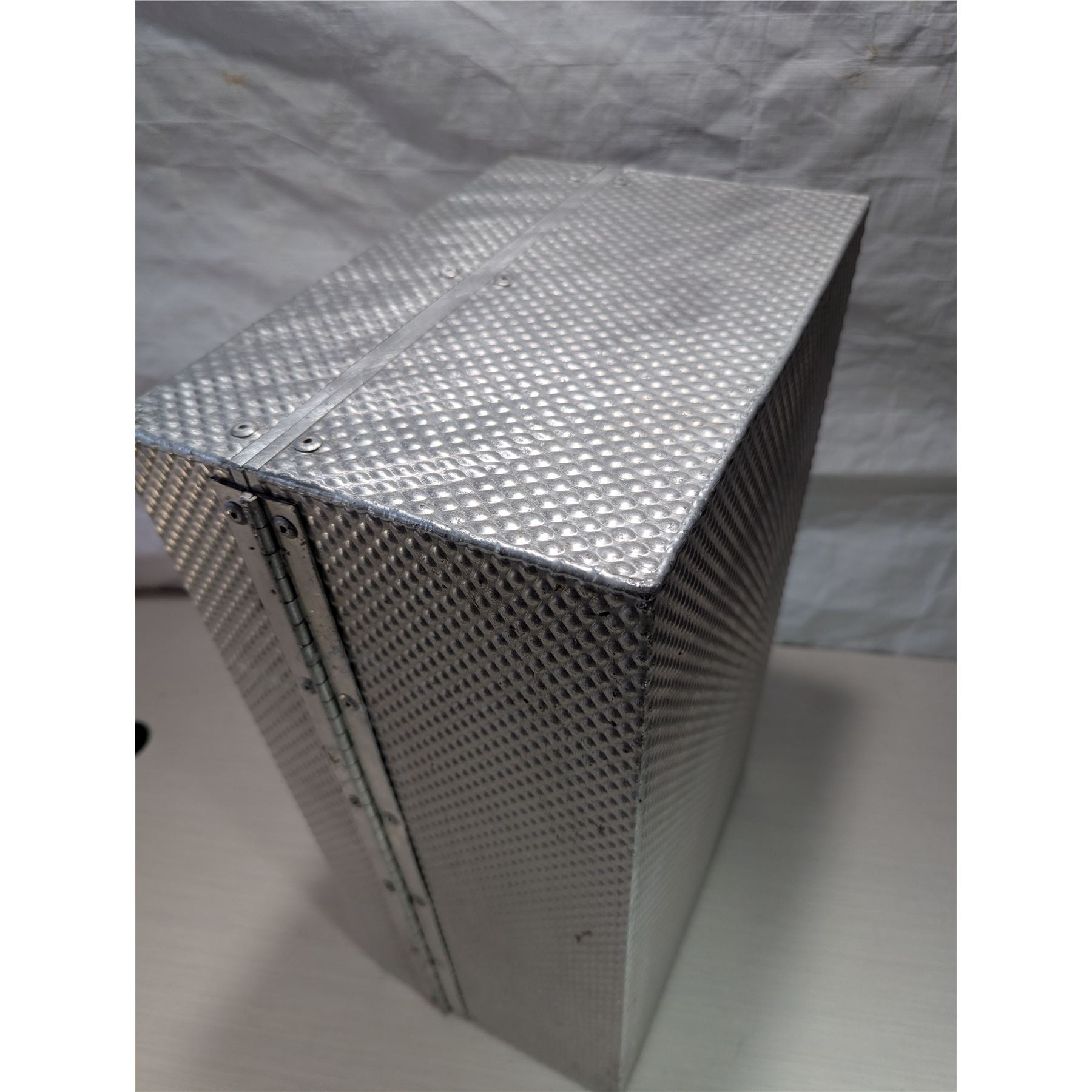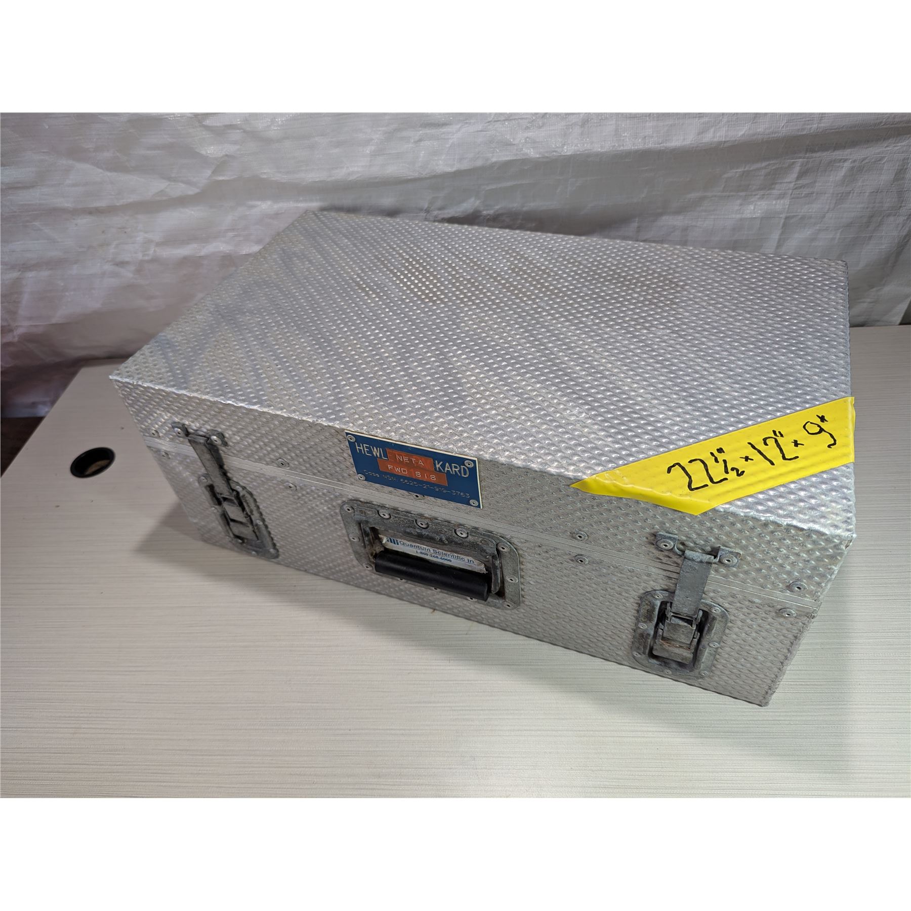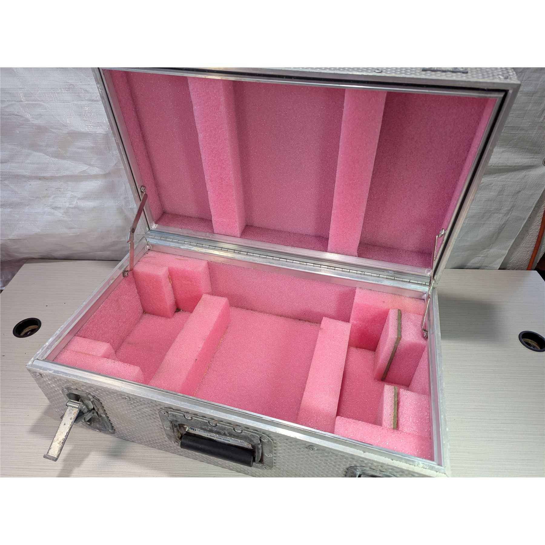 Vintage aluminum diamond plate toolbox, designed for high end computer components. Lined with pink foam insulation with Nielson Hardware latches (Since 1854) & Trans Canada Hardware handles. Marked HEWLETT PACKARD (likely 1970 era).