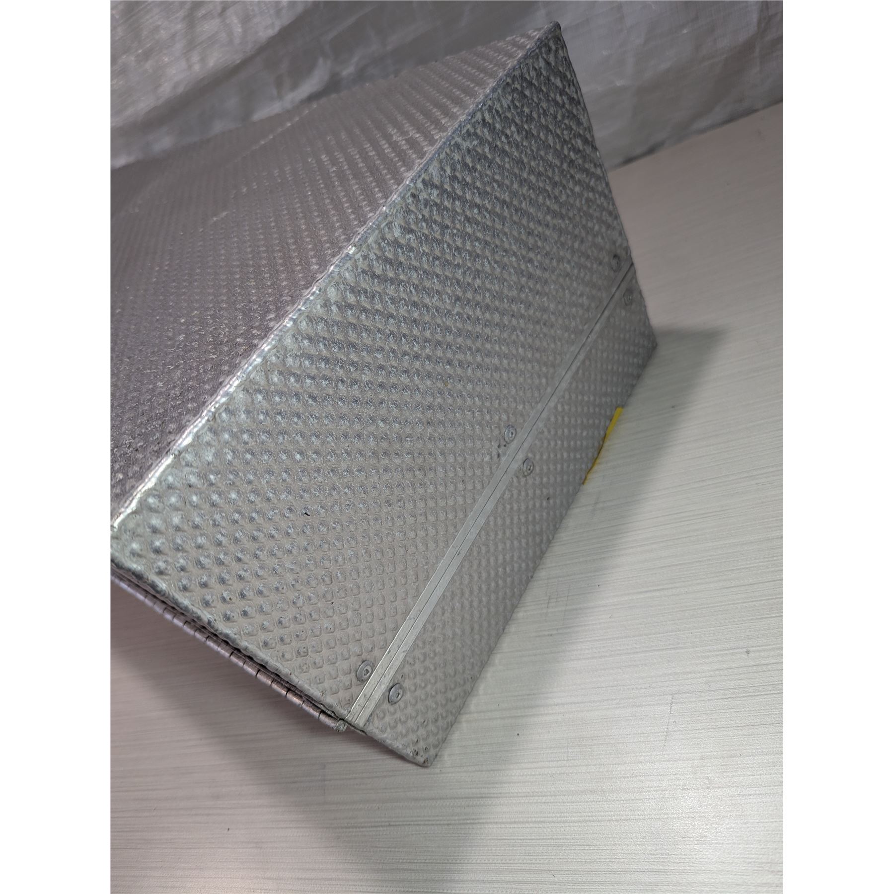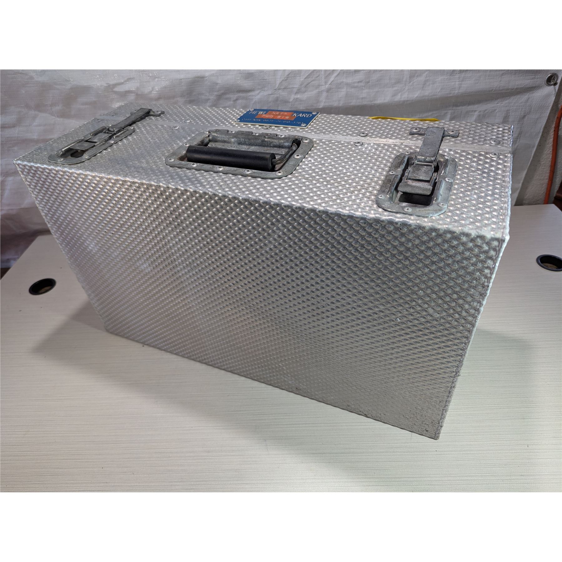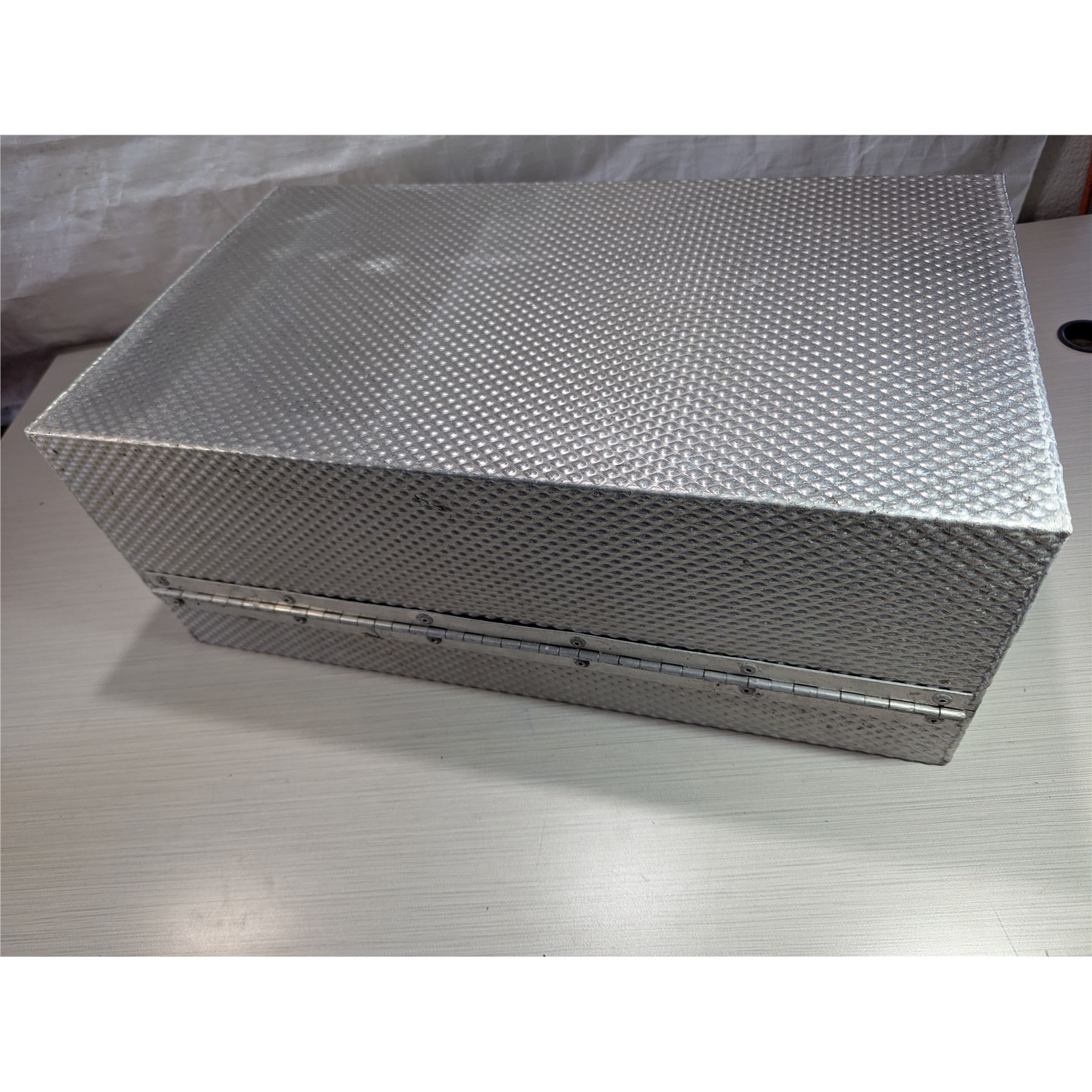 Vintage aluminum diamond plate toolbox, designed for high end computer components. Lined with pink foam insulation with Nielson Hardware latches (Since 1854) & Trans Canada Hardware handles. Marked HEWLETT PACKARD (likely 1970 era).