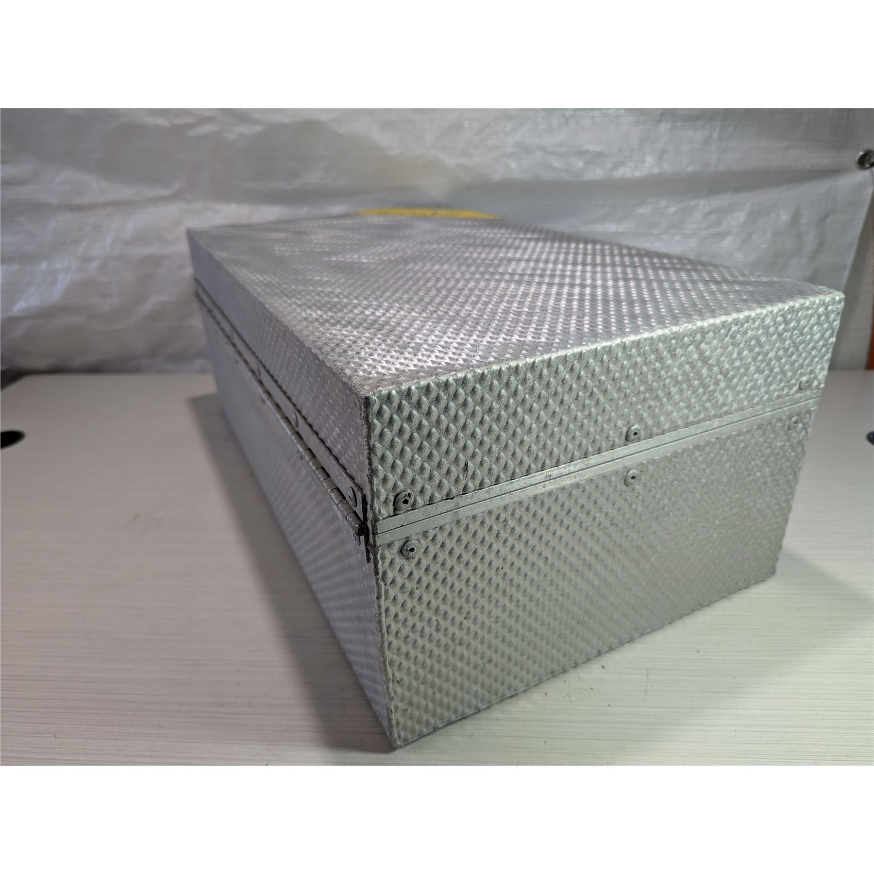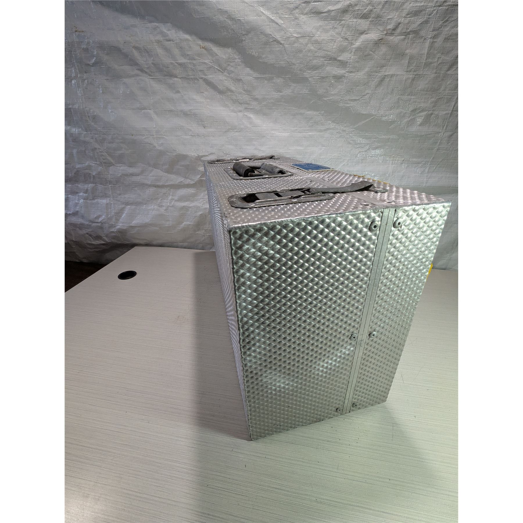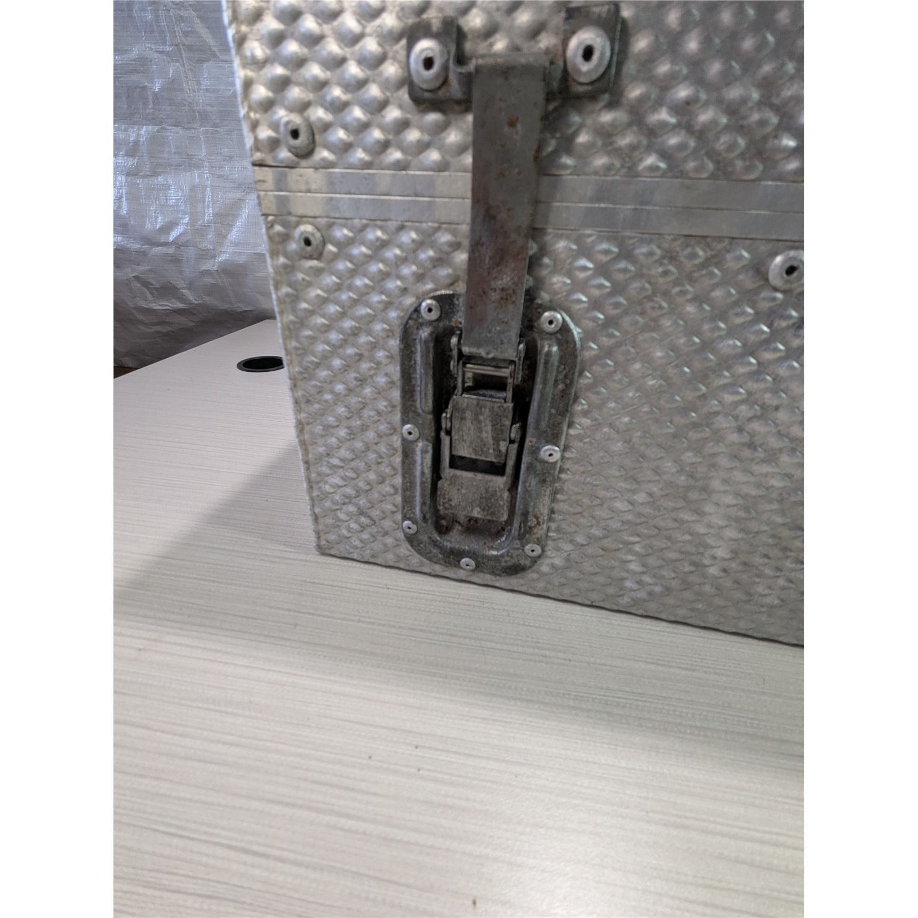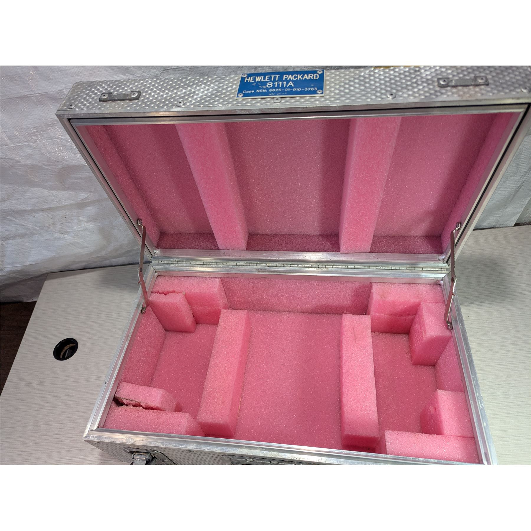 Vintage aluminum diamond plate toolbox, designed for high end computer components. Lined with pink foam insulation with Nielson Hardware latches (Since 1854) & Trans Canada Hardware handles. Marked HEWLETT PACKARD (likely 1970 era).