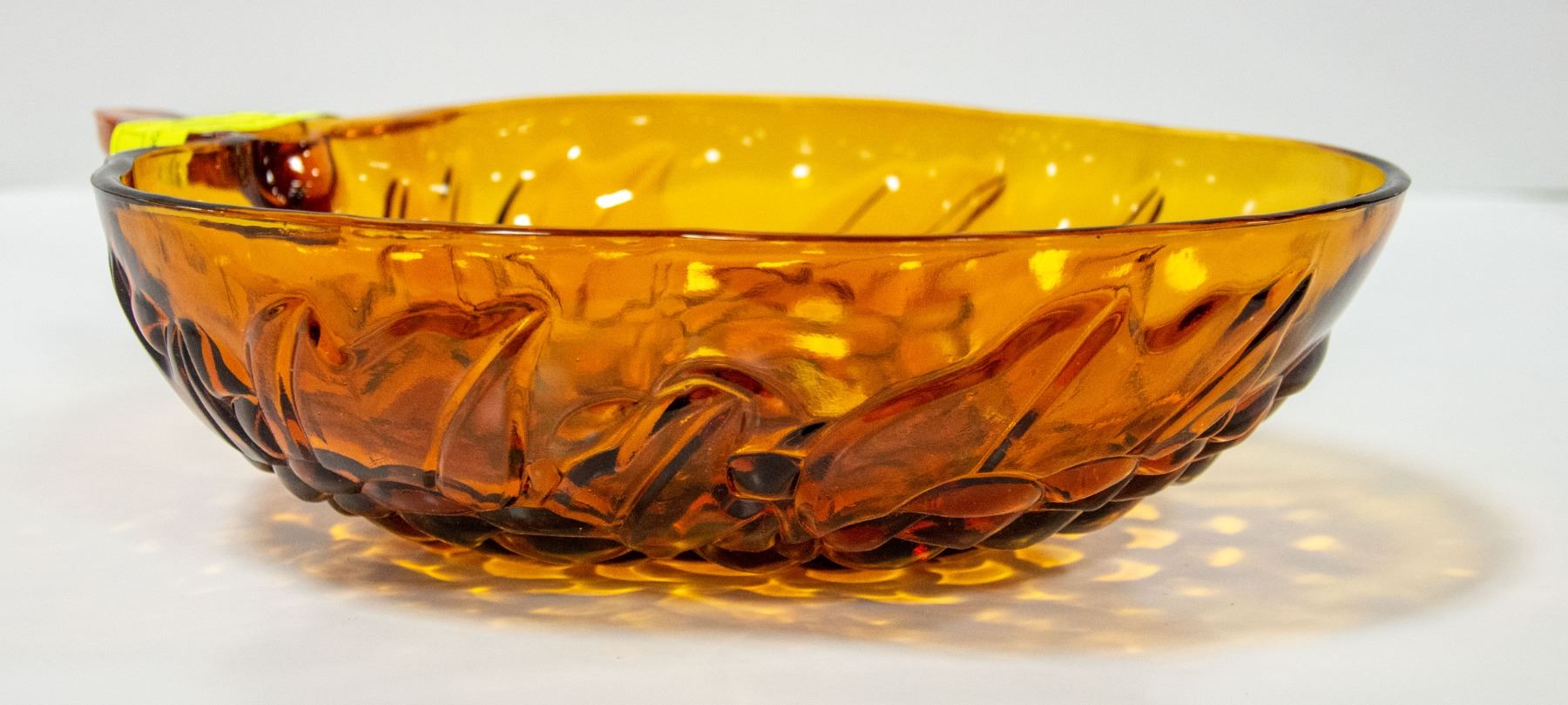VINTAGE AMBER ART GLASS FRUIT BOWL