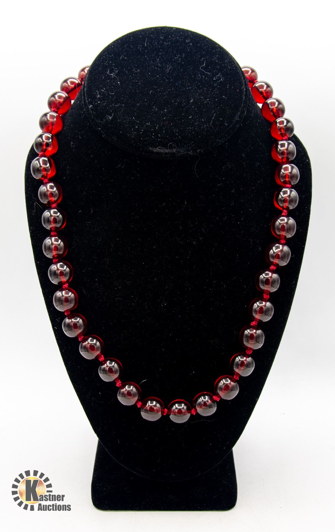 VINTAGE AMBER COLOURED BEADED NECKLACE