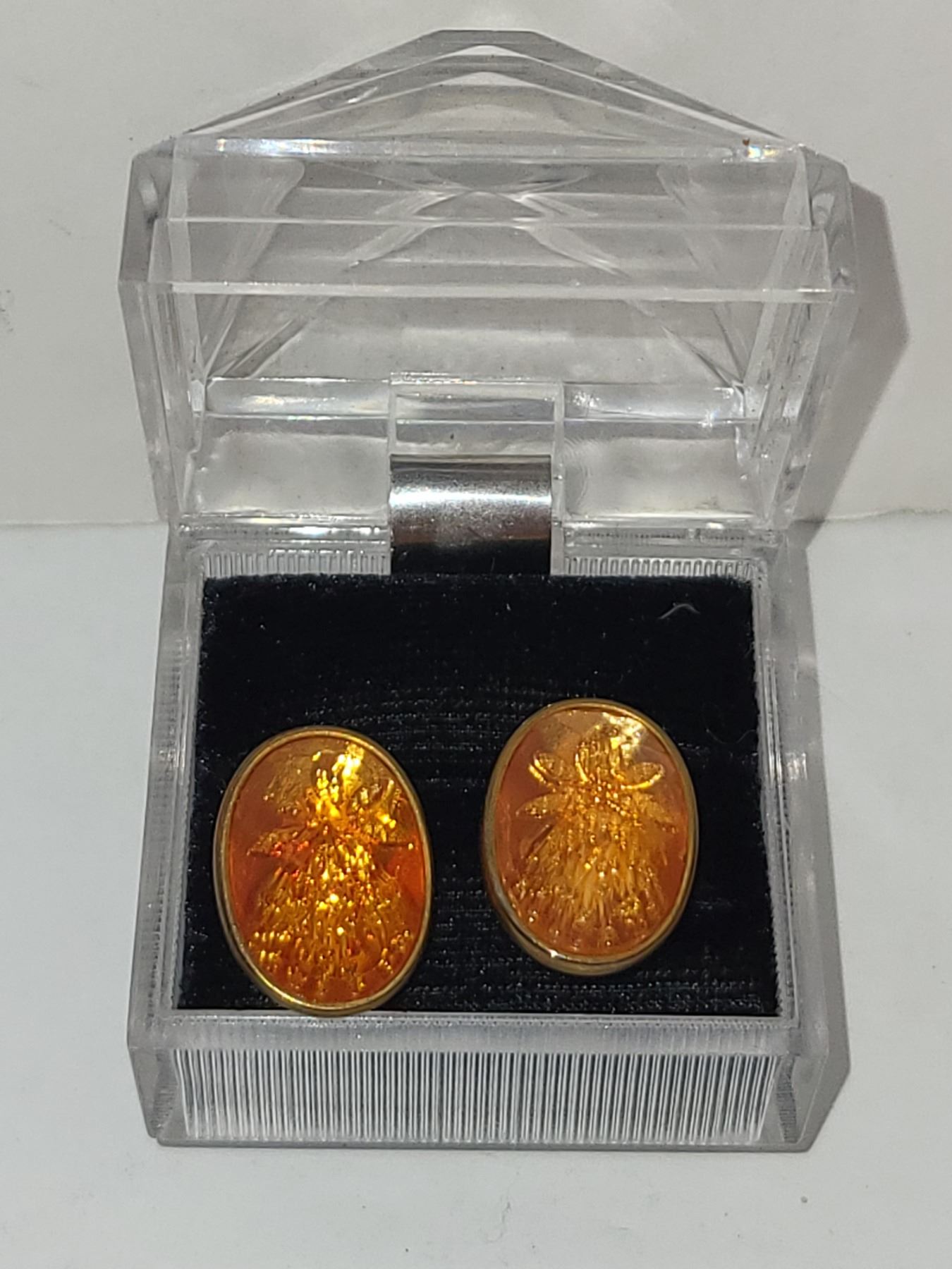 VINTAGE AMBER RESIN CLIP ON EARRINGS