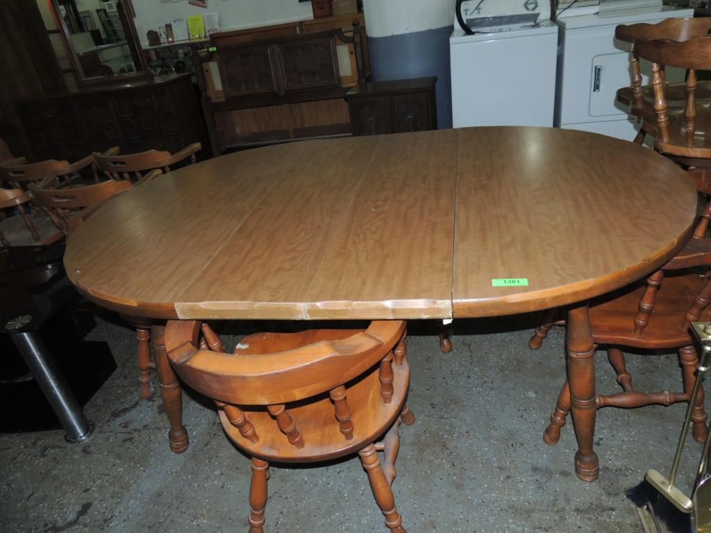 THICK WOODEN TABLE 2 LEAFS LIGHT WOOD 4 MATCHING DINING CHAIRS AS SHOWN SEE PHOTO FOR MORE DETAILS.