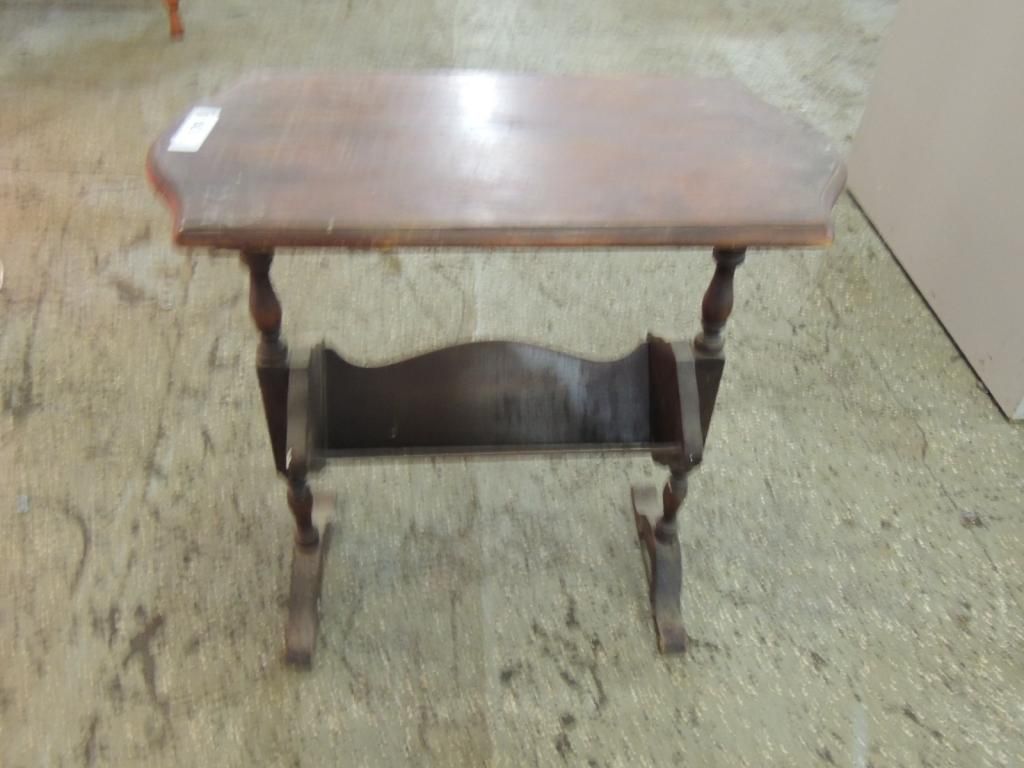 VINTAGE RETANGLE COLONIAL AMERICAN SIDE TABLE WITH MAGAZINE OR REMOTE SHELF AS SHOWN SEE PHOTO FOR MORE DETAILS.