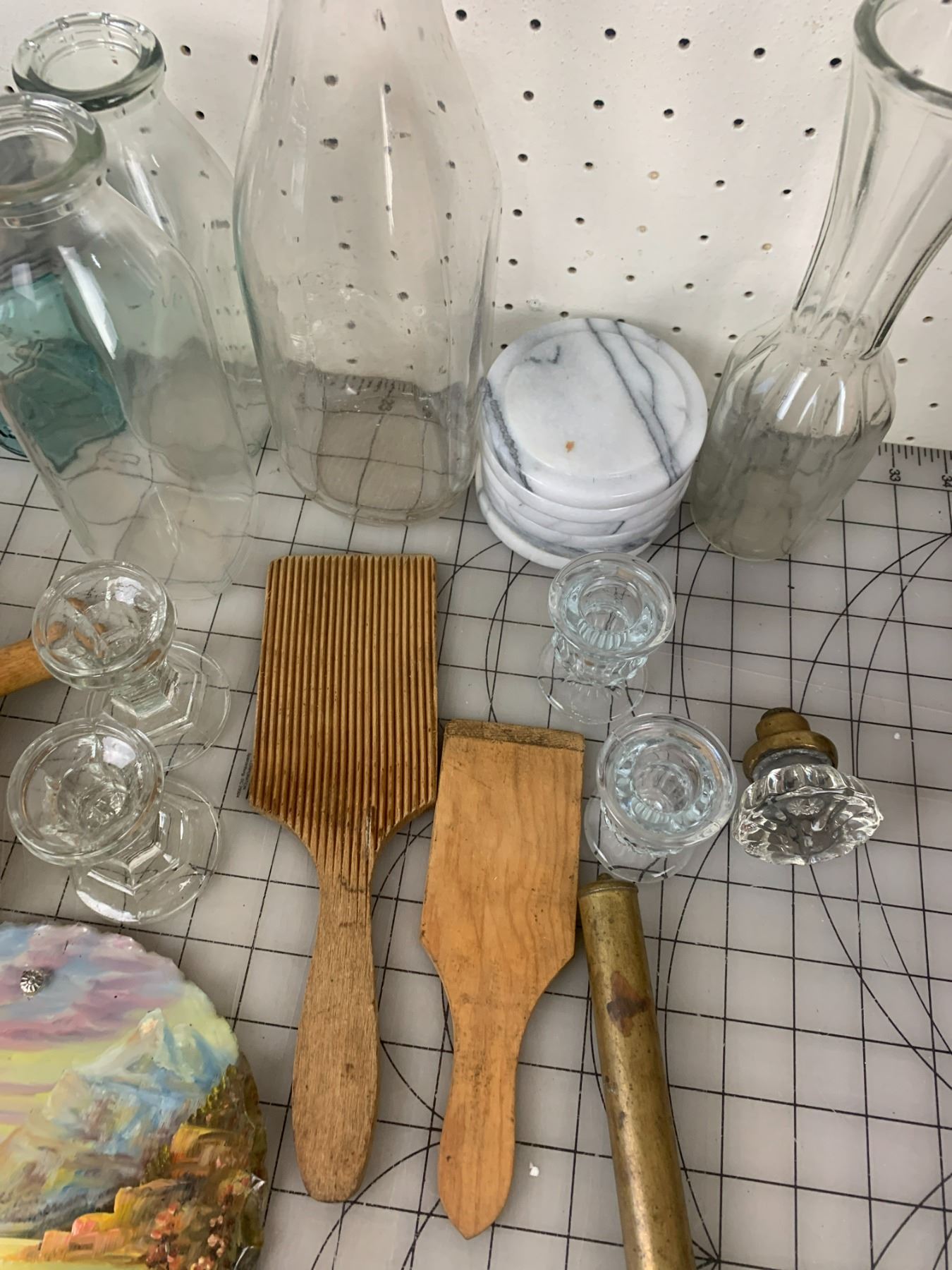 VINTAGE AND ANTIQUE MISC LOT CRANK PENCIL SHARPENER JARS ETC