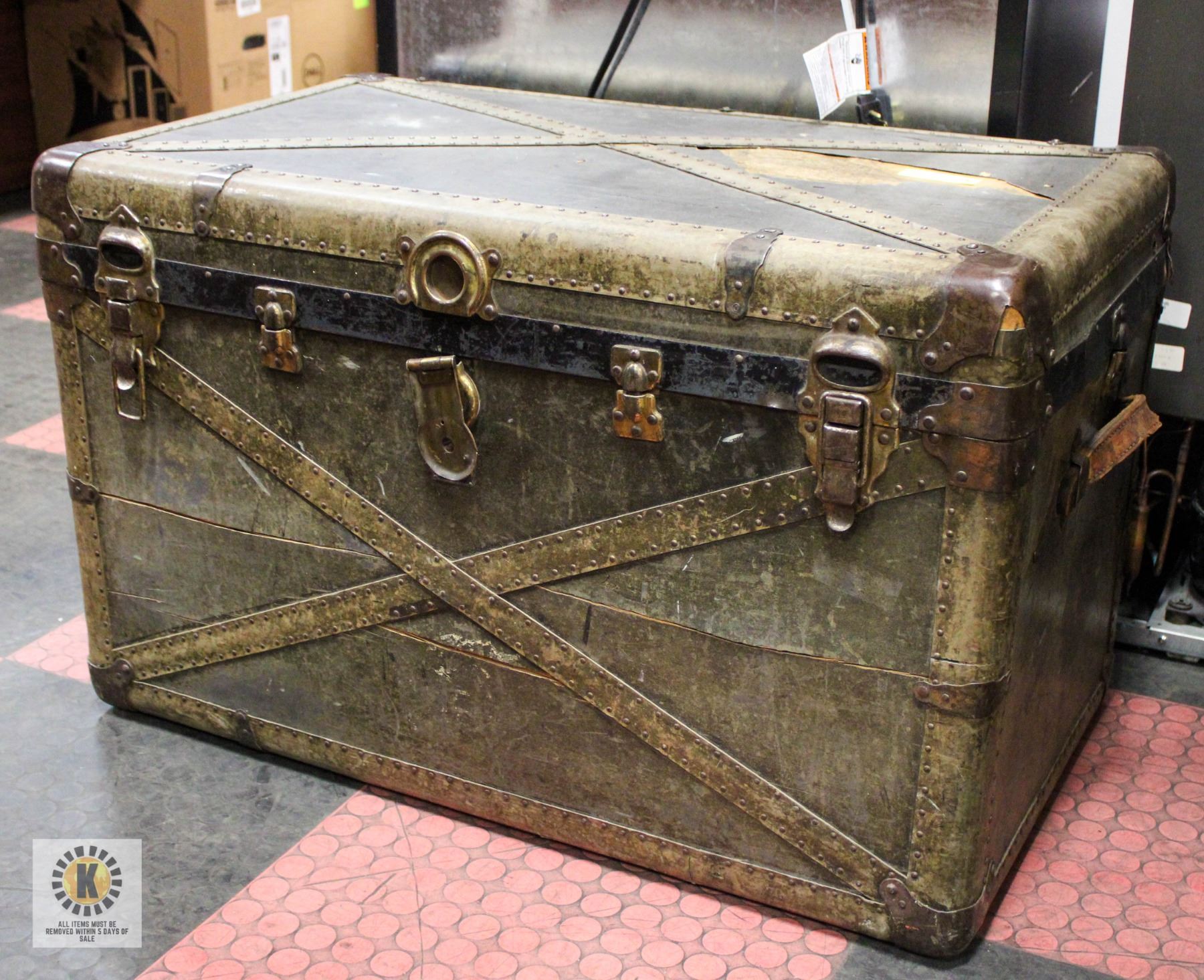 RIVETED CROSSBANDS, LEATHER HANDLES, METAL CAPPED CORNERS, 21.5"X 36"X 22.5"TALL **ALL ITEMS MUST BE REMOVED BY 5PM SATURDAY, MARCH 22ND 2025. ALL REMAINING ITEMS WILL BE SUBJECT TO A $6.00 PER DAY STORAGE CHARGE. ANY ITEMS REMAINING AFTER MONDAY, APRIL 7TH 2025 WILL BE CONSIDERED FORFEITED. NO REFUNDS WILL BE ISSUED FOR FORFEITED ITEMS. TO SCHEDULE A PICK UP APPOINTMENT CLICK HERE