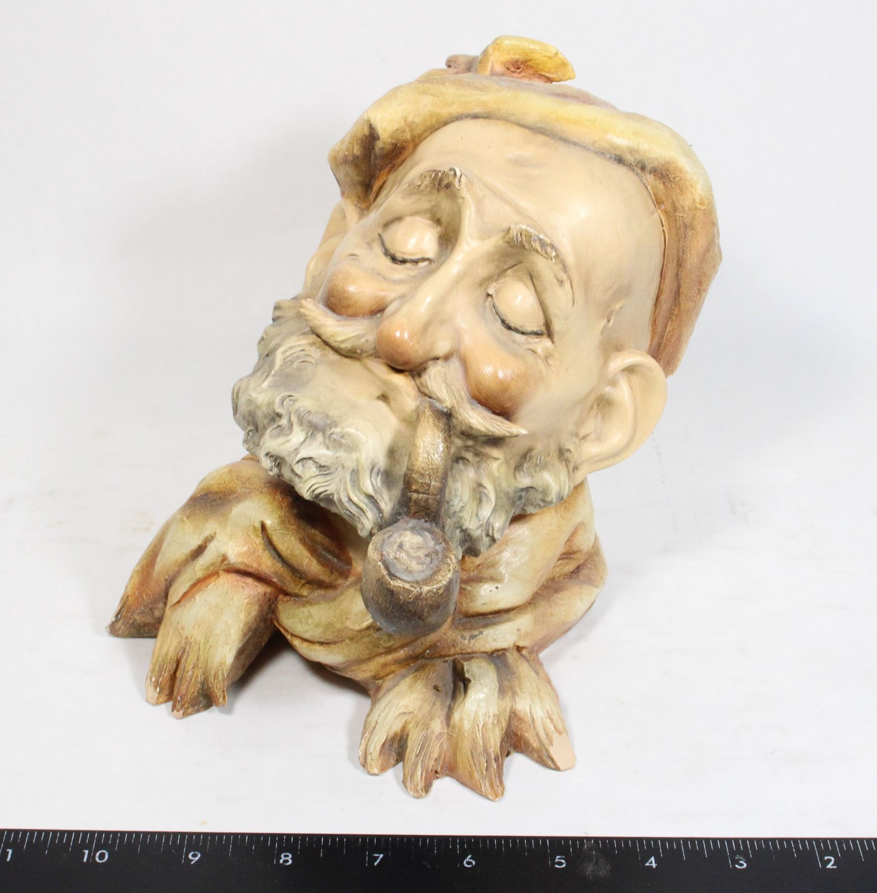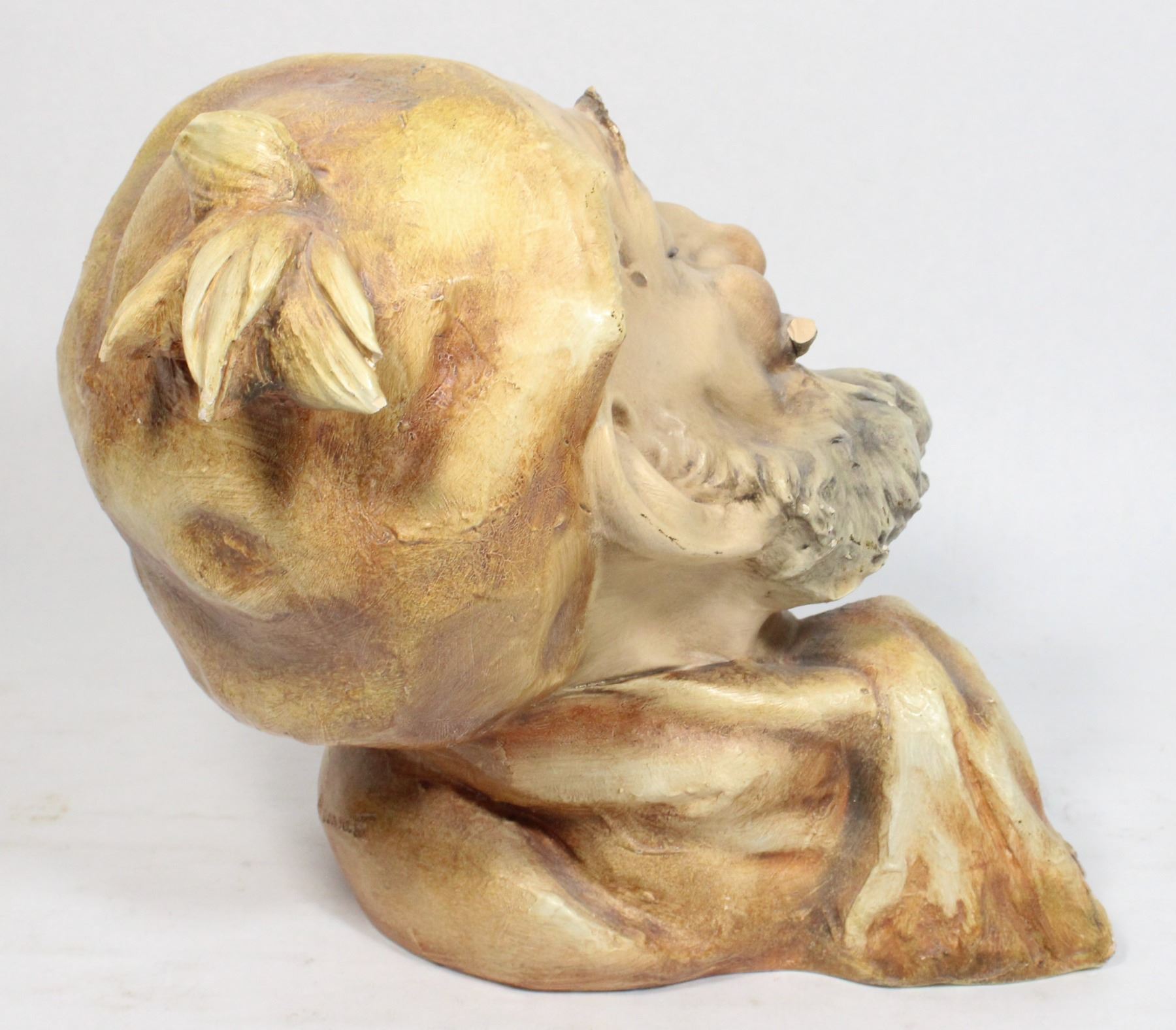 VINTAGE ANTONIO BORSATO CAPODIMONTE PORCELAIN BUST OF OLD MAN WITH PIPE, 16X14CM. A FEW CHIPS
