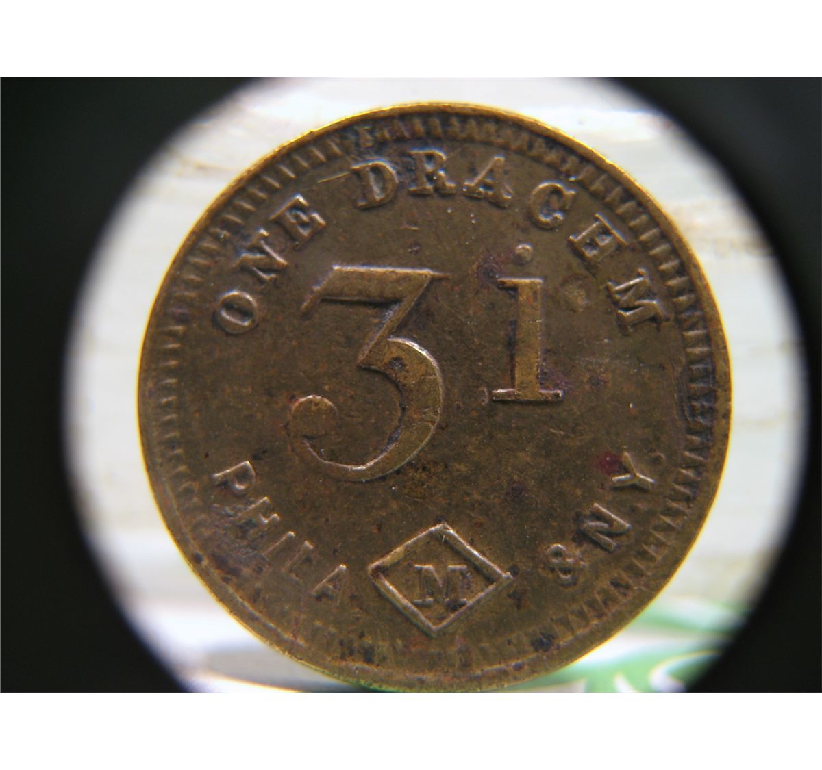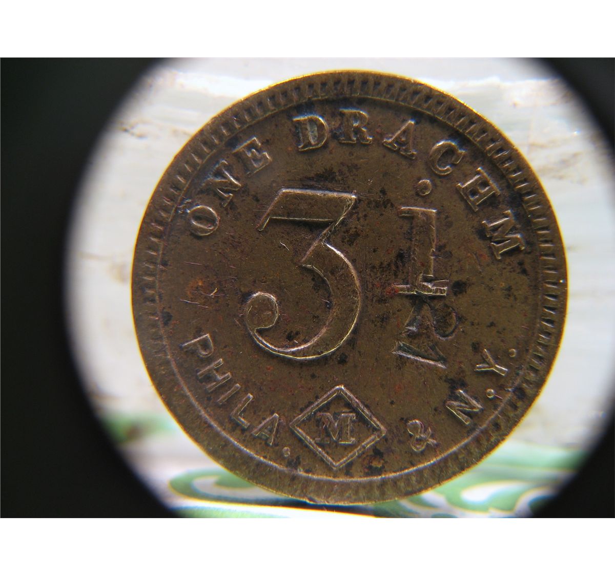 (1) VINTAGE APOTHECARY WEIGHT HALF DRACHM JOHN MORRIS NEW YORK PHILADELPHIA CON TOKEN
