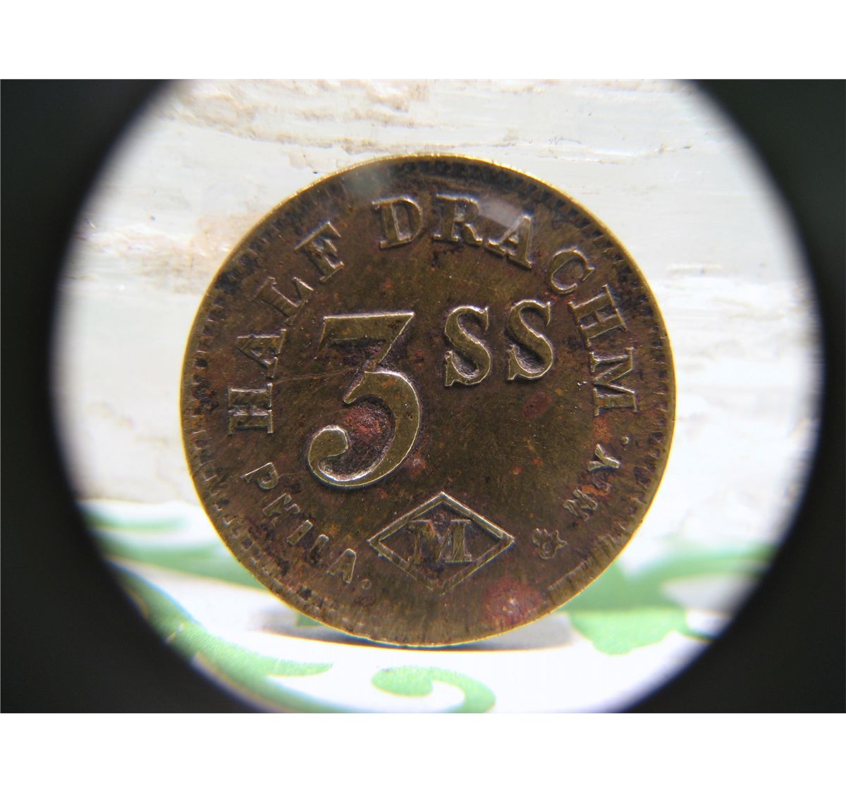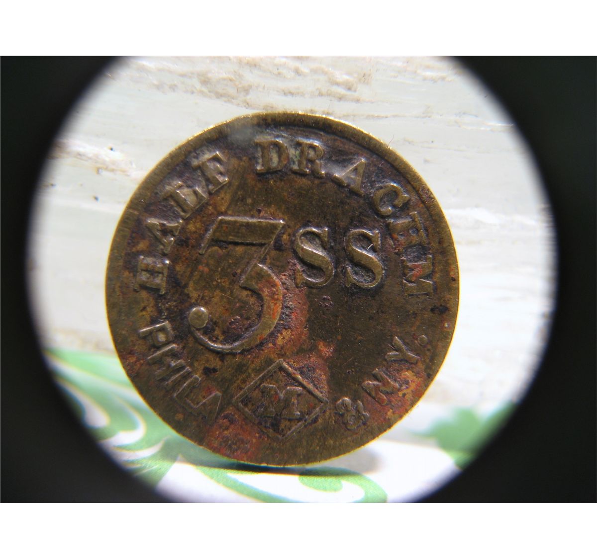(1) VINTAGE APOTHECARY WEIGHT HALF DRACHM JOHN MORRIS NEW YORK PHILADELPHIA CON TOKEN