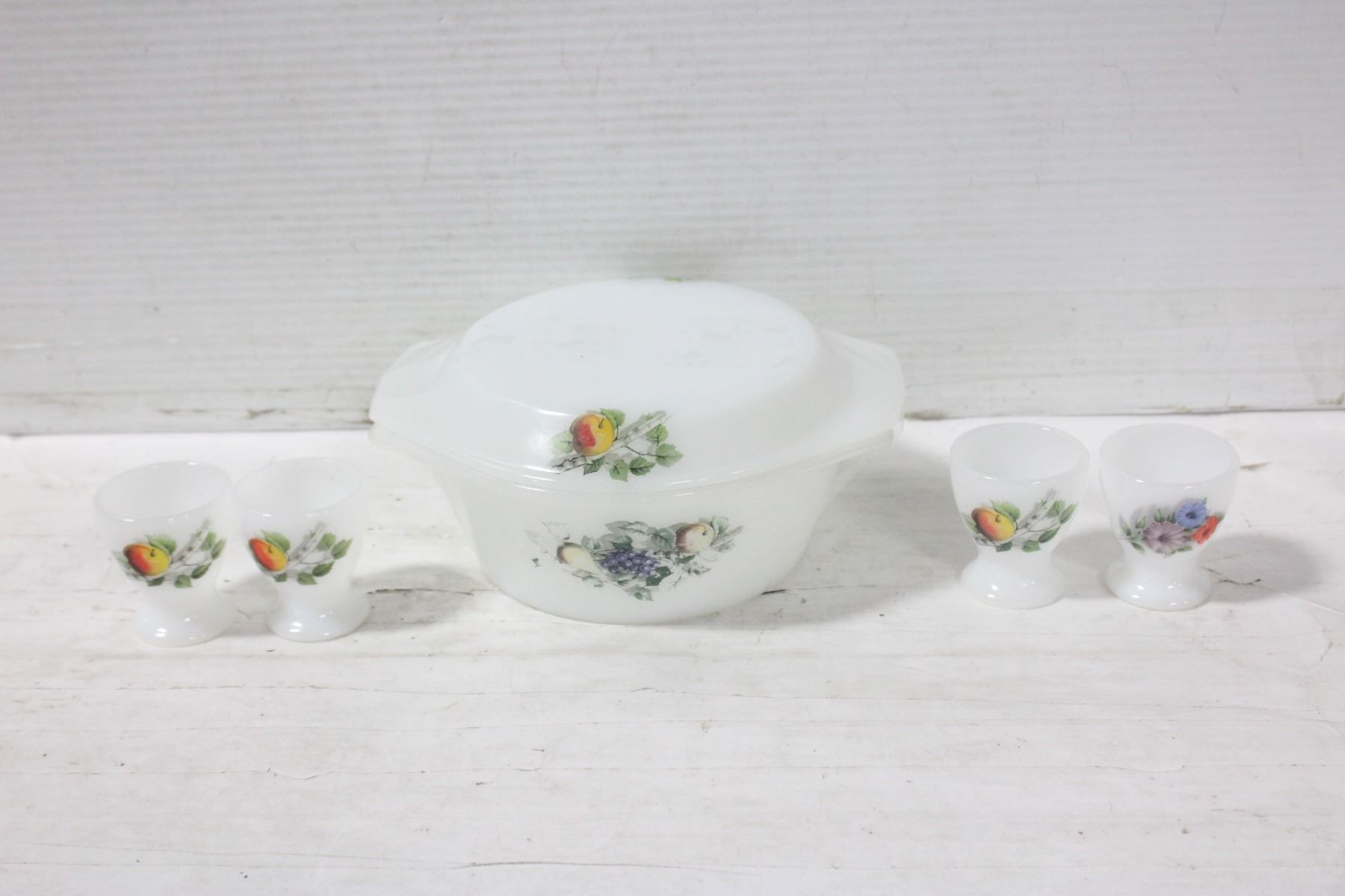 LIDDED DISH & 4 EGG HOLDERS **ALL ITEMS MUST BE REMOVED BY 5PM SATURDAY, APRIL 5TH 2025. ALL REMAINING ITEMS WILL BE SUBJECT TO A $6.00 PER DAY STORAGE CHARGE. ANY ITEMS REMAINING AFTER MONDAY, APRIL 21ST 2025 WILL BE CONSIDERED FORFEITED. NO REFUNDS WILL BE ISSUED FOR FORFEITED ITEMS. TO SCHEDULE A PICK UP APPOINTMENT CLICK HERE