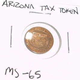 VINTAGE ARIZONA STATE 1 TAX TOKEN *EXTREMELY RARE MS-65 HIGH GRADE*!! ***Coin, Currency & All Items Listed in this auction - Grades, Conditions and Values are not Safe Deposit Coins LLC Responsibilty. Grades, Condition and Values are determined by Consigner(s) & Buyers ONLY***
