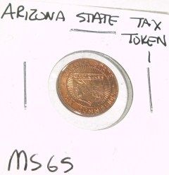 VINTAGE ARIZONA STATE 1 TAX TOKEN *EXTREMELY RARE MS-65 HIGH GRADE*!! ***Coin, Currency & All Items Listed in this auction - Grades, Conditions and Values are not Safe Deposit Coins LLC Responsibilty. Grades, Condition and Values are determined by Consigner(s) & Buyers ONLY***