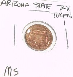 VINTAGE ARIZONA STATE 1 TAX TOKEN *EXTREMELY RARE MS HIGH GRADE*!! ***Coin, Currency & All Items Listed in this auction - Grades, Conditions and Values are not Safe Deposit Coins LLC Responsibilty. Grades, Condition and Values are determined by Consigner(s) & Buyers ONLY***