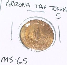 VINTAGE ARIZONA STATE 5 LARGE TAX TOKEN *EXTREMELY RARE MS-65 HIGH GRADE*!! ***Coin, Currency & All Items Listed in this auction - Grades, Conditions and Values are not Safe Deposit Coins LLC Responsibilty. Grades, Condition and Values are determined by Consigner(s) & Buyers ONLY***
