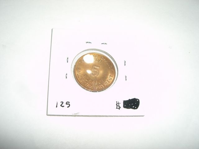 VINTAGE ARIZONA STATE 5 LARGE TAX TOKEN *EXTREMELY RARE MS-65 HIGH GRADE*!! ***Coin, Currency & All Items Listed in this auction - Grades, Conditions and Values are not Safe Deposit Coins LLC Responsibilty. Grades, Condition and Values are determined by Consigner(s) & Buyers ONLY***