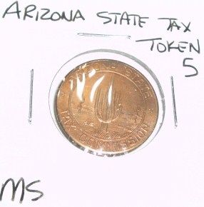 VINTAGE ARIZONA STATE 5 LARGE TAX TOKEN *EXTREMELY RARE MS HIGH GRADE*!! ***Coin, Currency & All Items Listed in this auction - Grades, Conditions and Values are not Safe Deposit Coins LLC Responsibilty. Grades, Condition and Values are determined by Consigner(s) & Buyers ONLY***