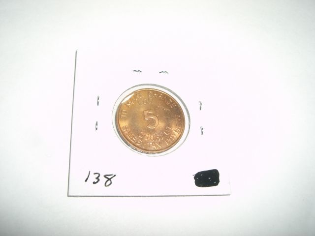 VINTAGE ARIZONA STATE 5 LARGE TAX TOKEN *EXTREMELY RARE MS HIGH GRADE*!! ***Coin, Currency & All Items Listed in this auction - Grades, Conditions and Values are not Safe Deposit Coins LLC Responsibilty. Grades, Condition and Values are determined by Consigner(s) & Buyers ONLY***