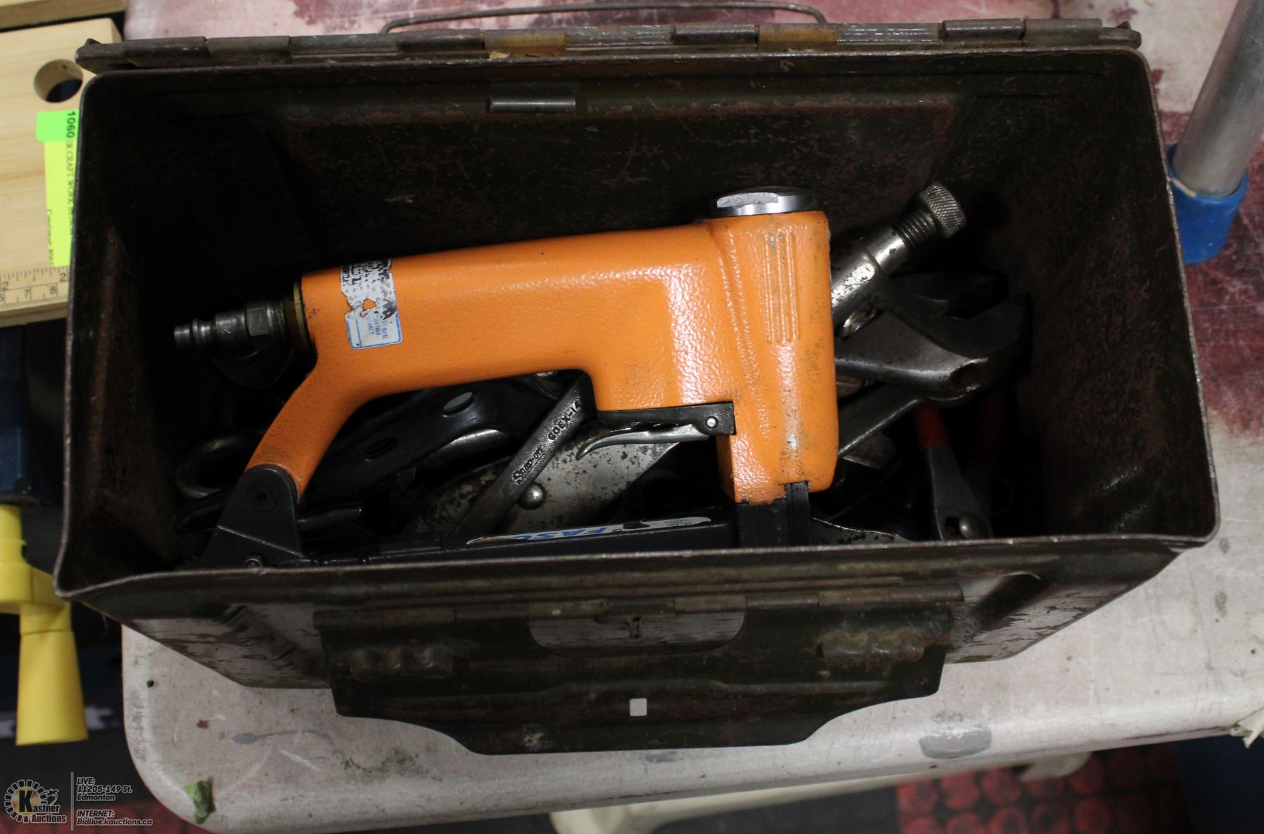VINTAGE ARMY AMMO BOX WITH TOOL CONTENTS