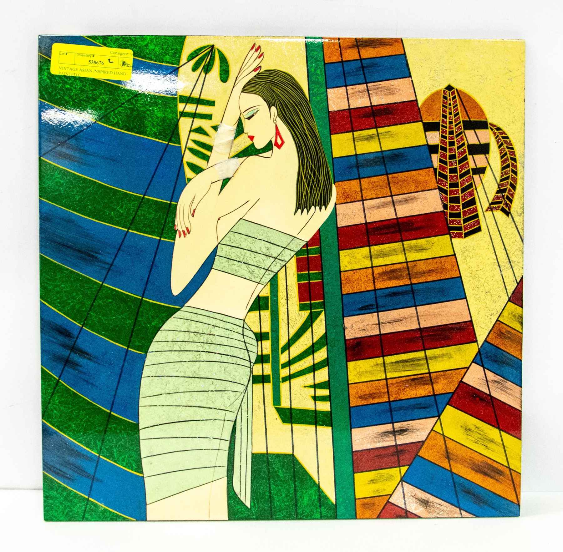 WALL ART PANEL FRONT AND BACK ENAMELED WOOD WITH WALL HANGER, VIBRANT COLOURS (15.75"X 15.75"), MADE IN VIETNAM