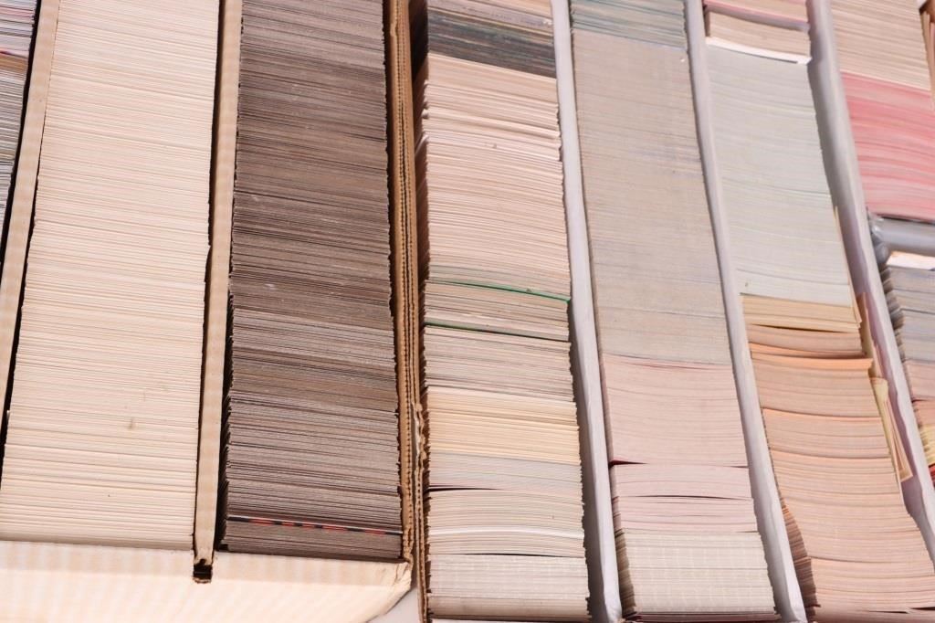 Vintage assorted baseball card sets to include sixteen boxes containing around 1000 to 2000 cards per set containing baseball cards ranging from the 1970's to the late 1990's.