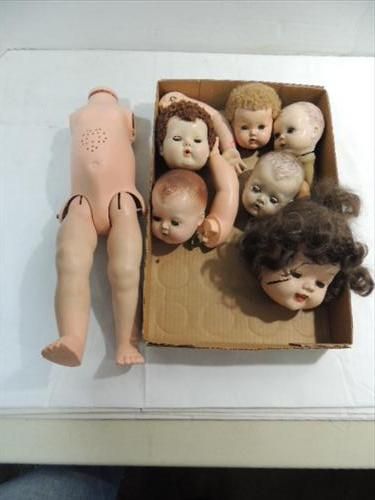 VINTAGE ASSORTED LOT DOLL PARTS: HEADS, ARMS AND LEGS. IDEAL, AMF CHARATER AND MORE. AS SHOWN. VIEW PICTURE FOR DETAIL.