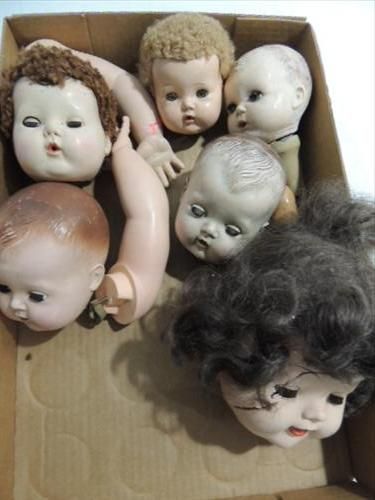 VINTAGE ASSORTED LOT DOLL PARTS: HEADS, ARMS