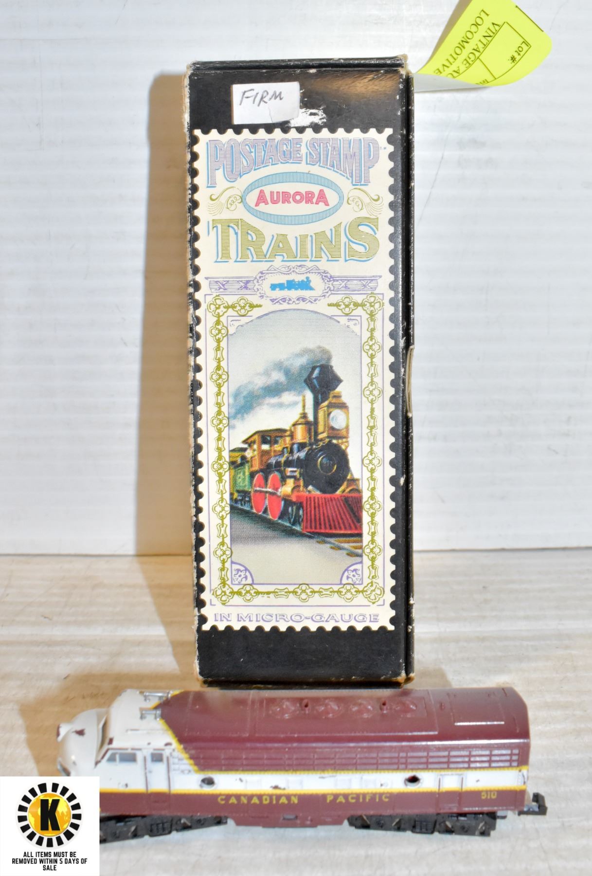 VINTAGE AURORA POSTAGE STAMP LOCOMOTIVE