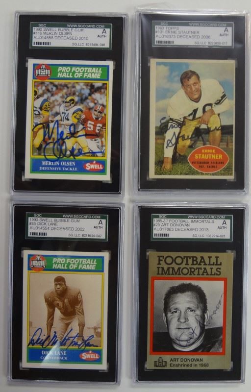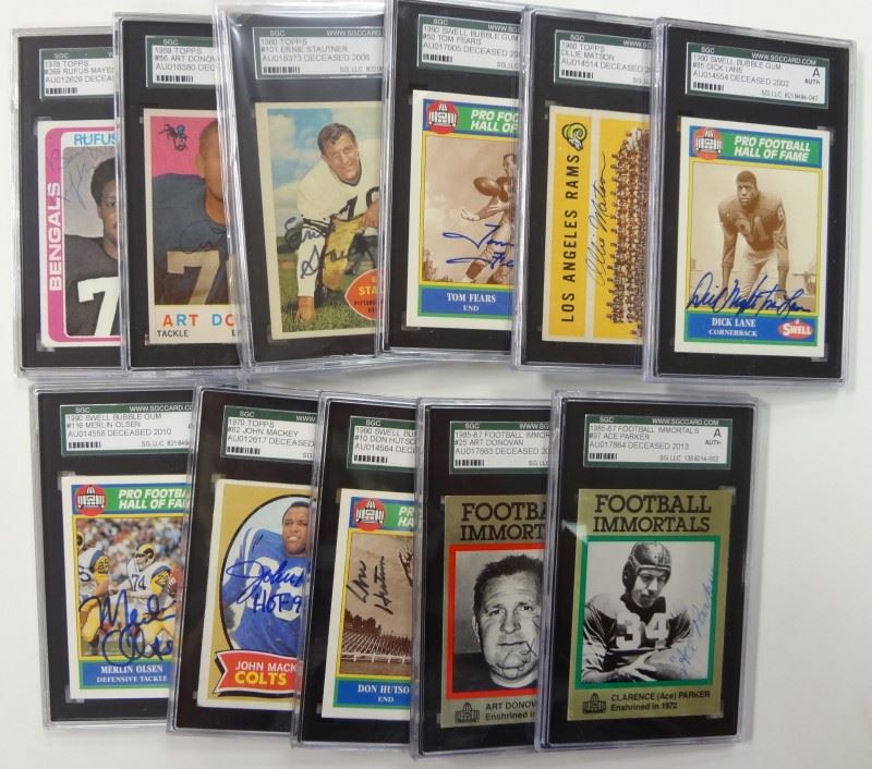 DICK NIGHT TRAIN LANE, MERLIN OLSEN, OLLIE MATSON, ERNIE STAUTNER, 2 - ART DONOVAN, DON HUTSON, TIM FEARS, ACE PARKER, JOHN MACKEY, RUFUS MAYES, EST $350-$400