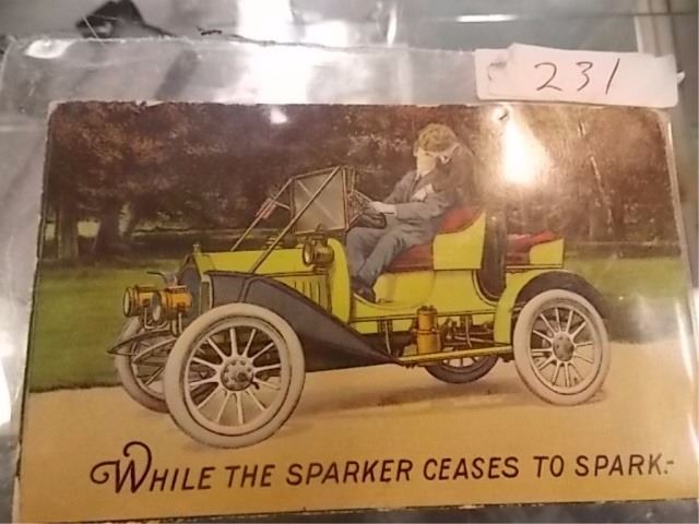 VINTAGE AUTOMOBILIA ADVERTISING POST CARDS - WHILE THE SPARK CEASES TO SPARK........" - POSTAL STAMP 1912
