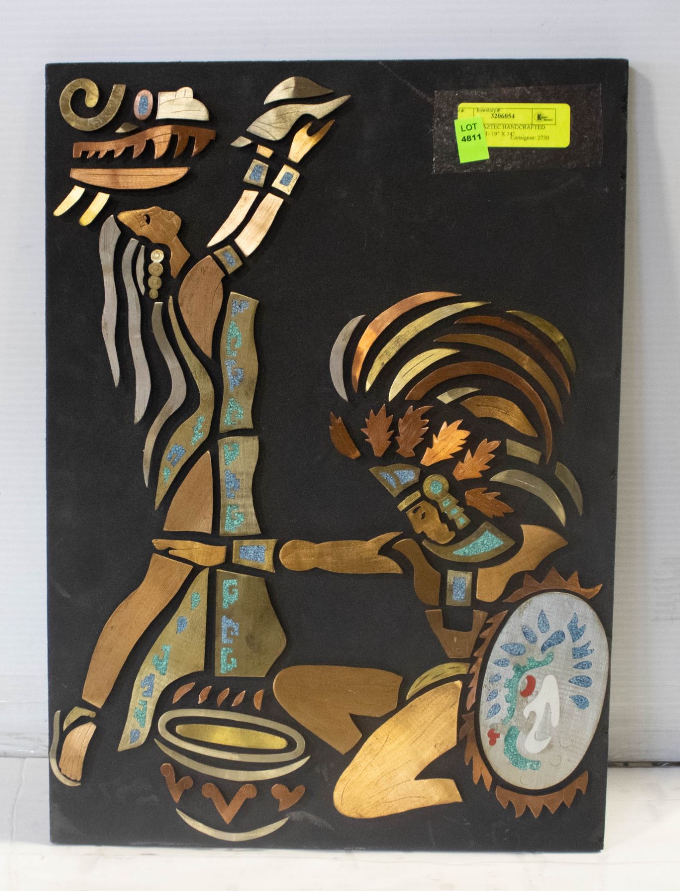 VINTAGE AZTEC HANDCRAFTED METAL ART- 19" X 14"