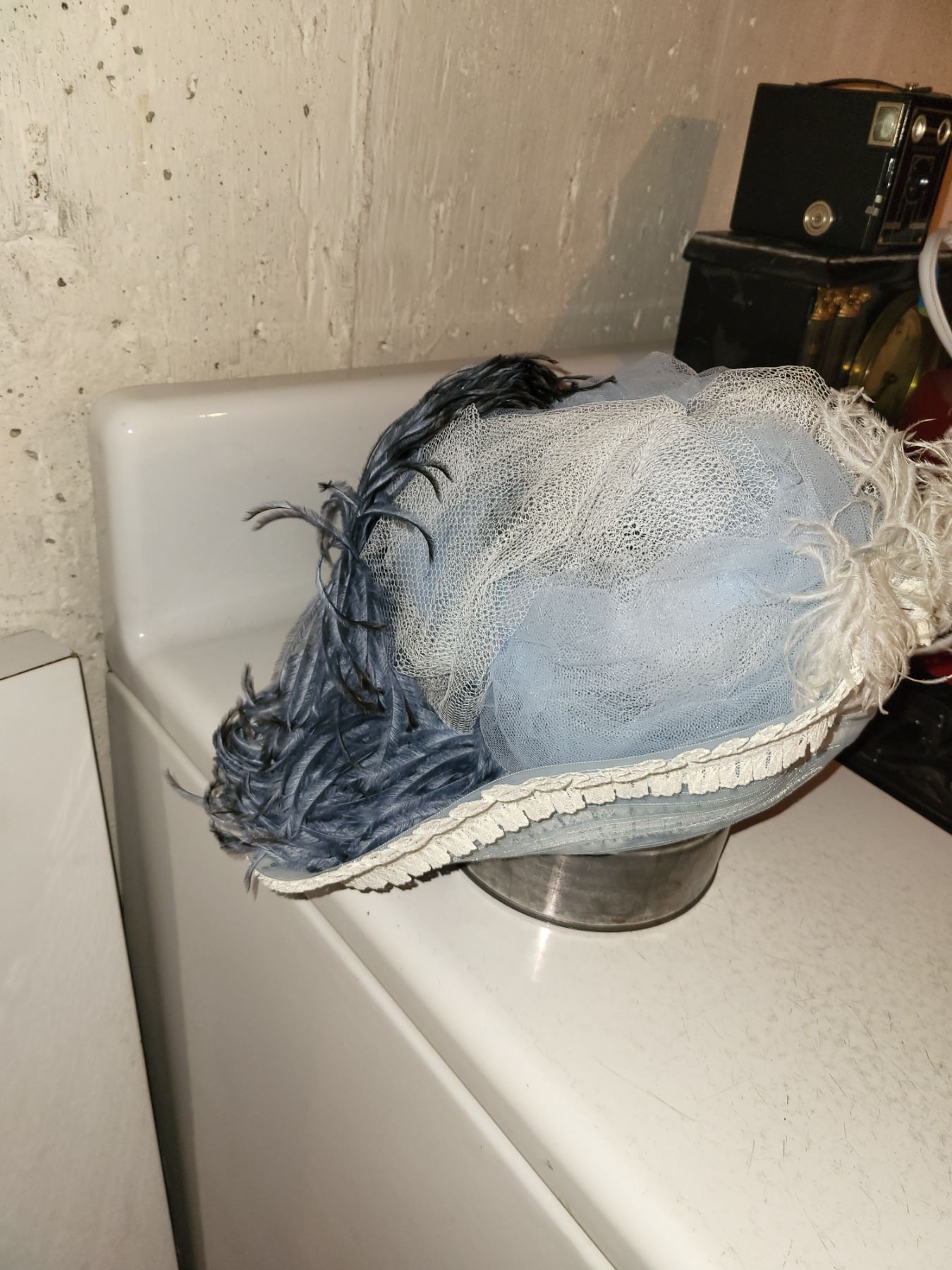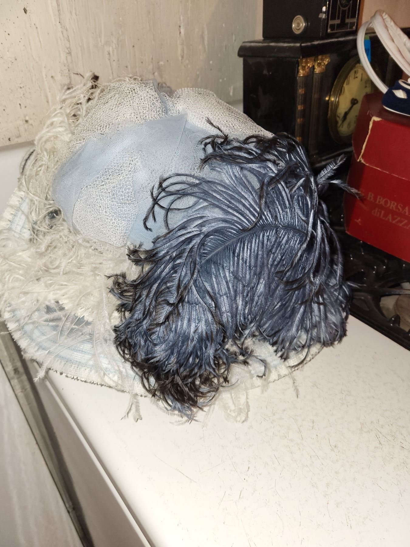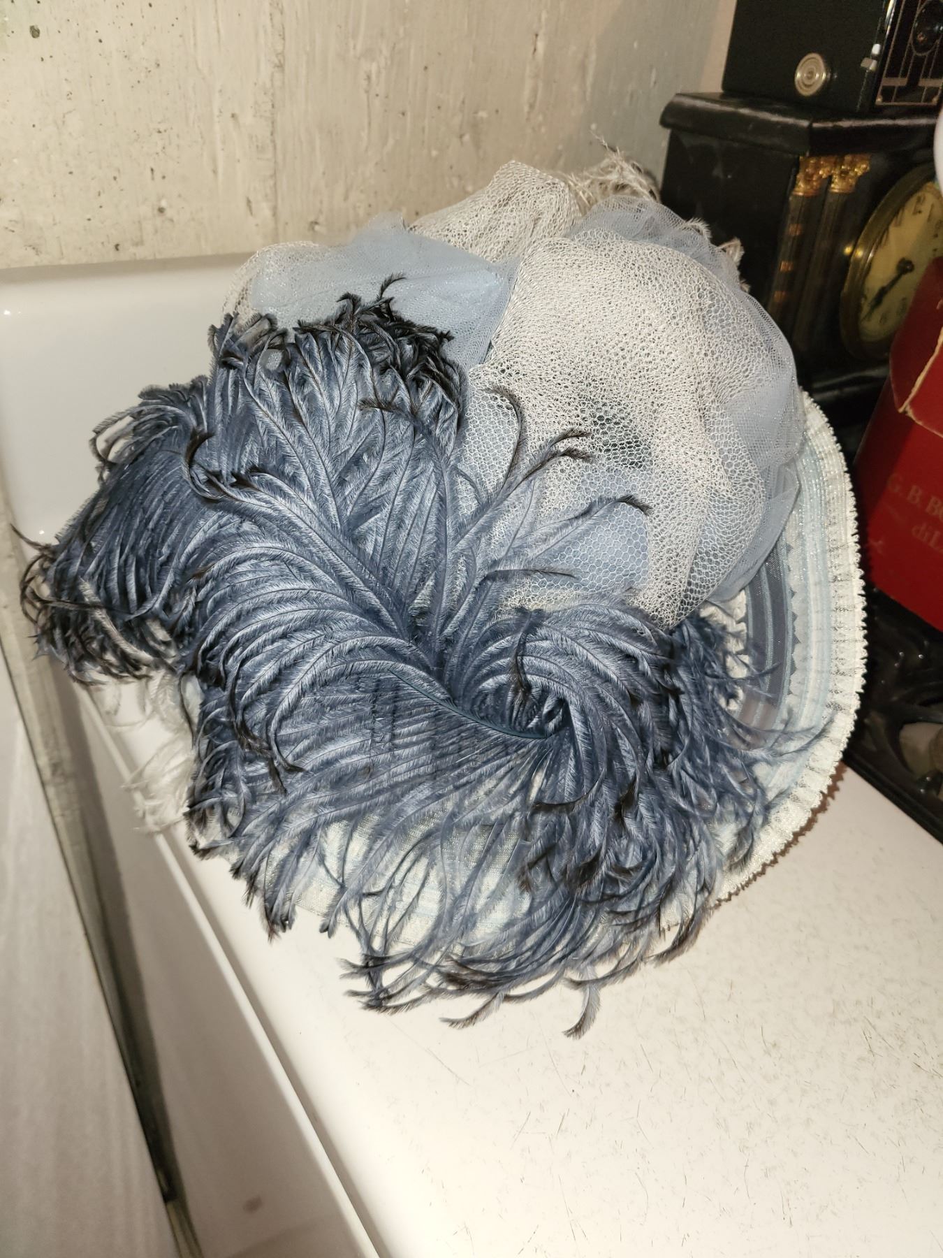 VINTAGE BABY BLUE AND WHITE FEATHERED HAT