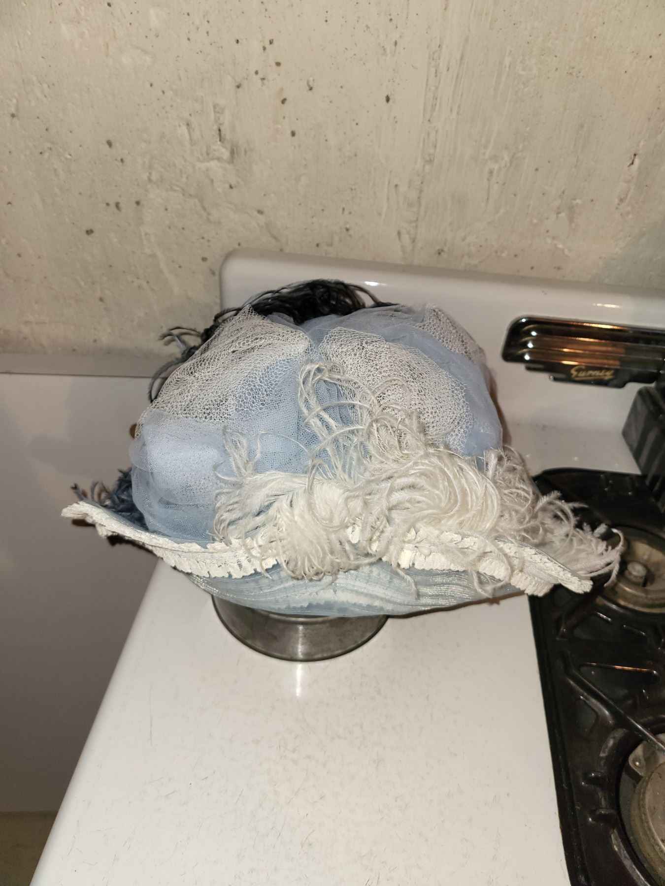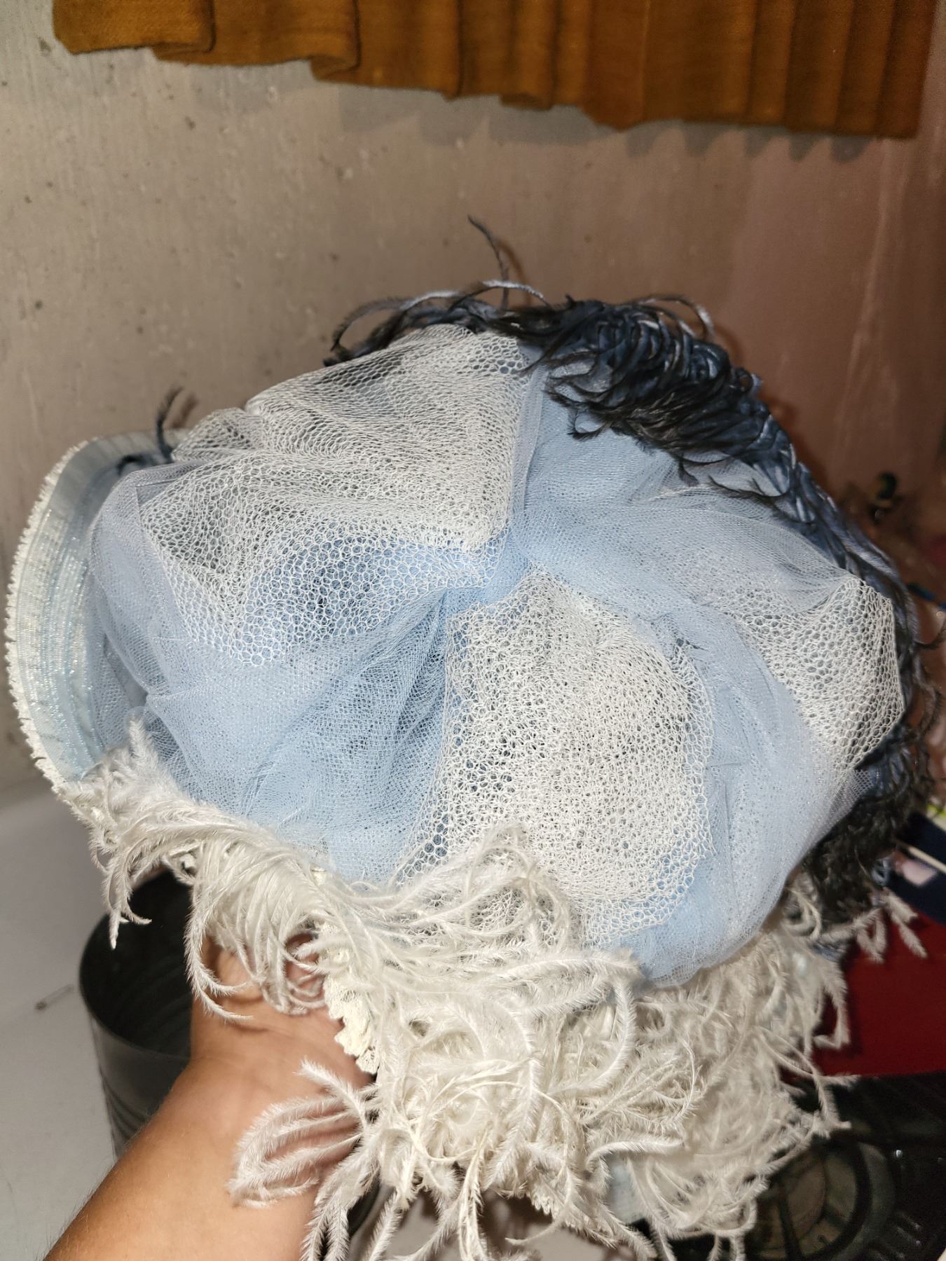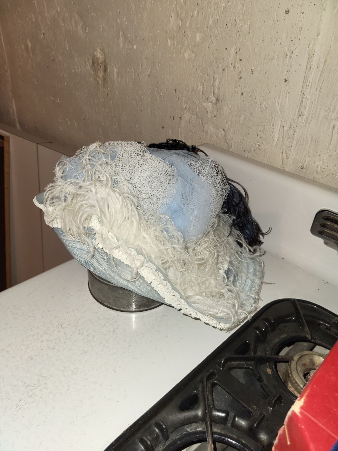 VINTAGE BABY BLUE AND WHITE FEATHERED HAT