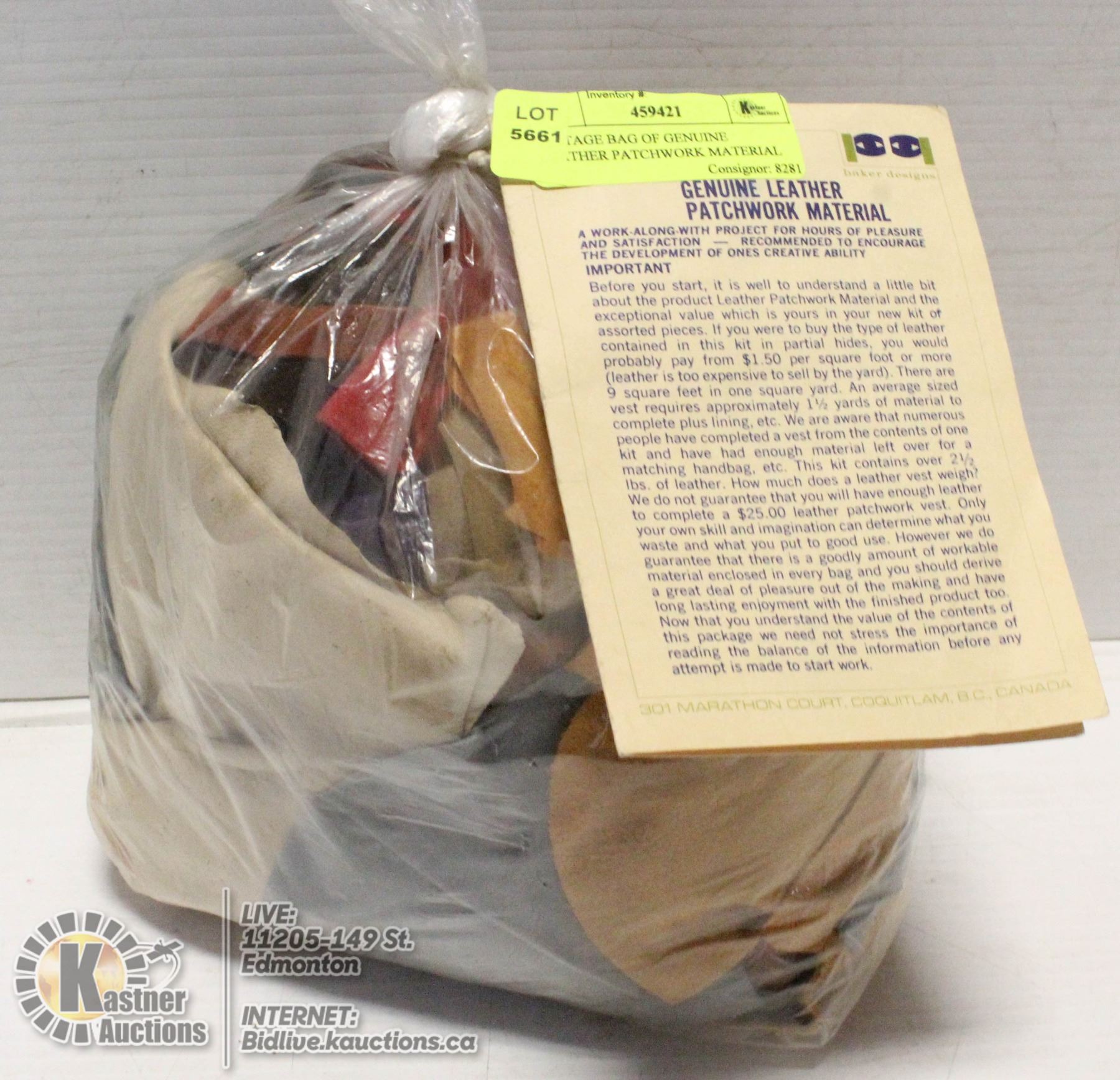 VINTAGE BAG OF GENUINE LEATHER PATCHWORK MATERIAL