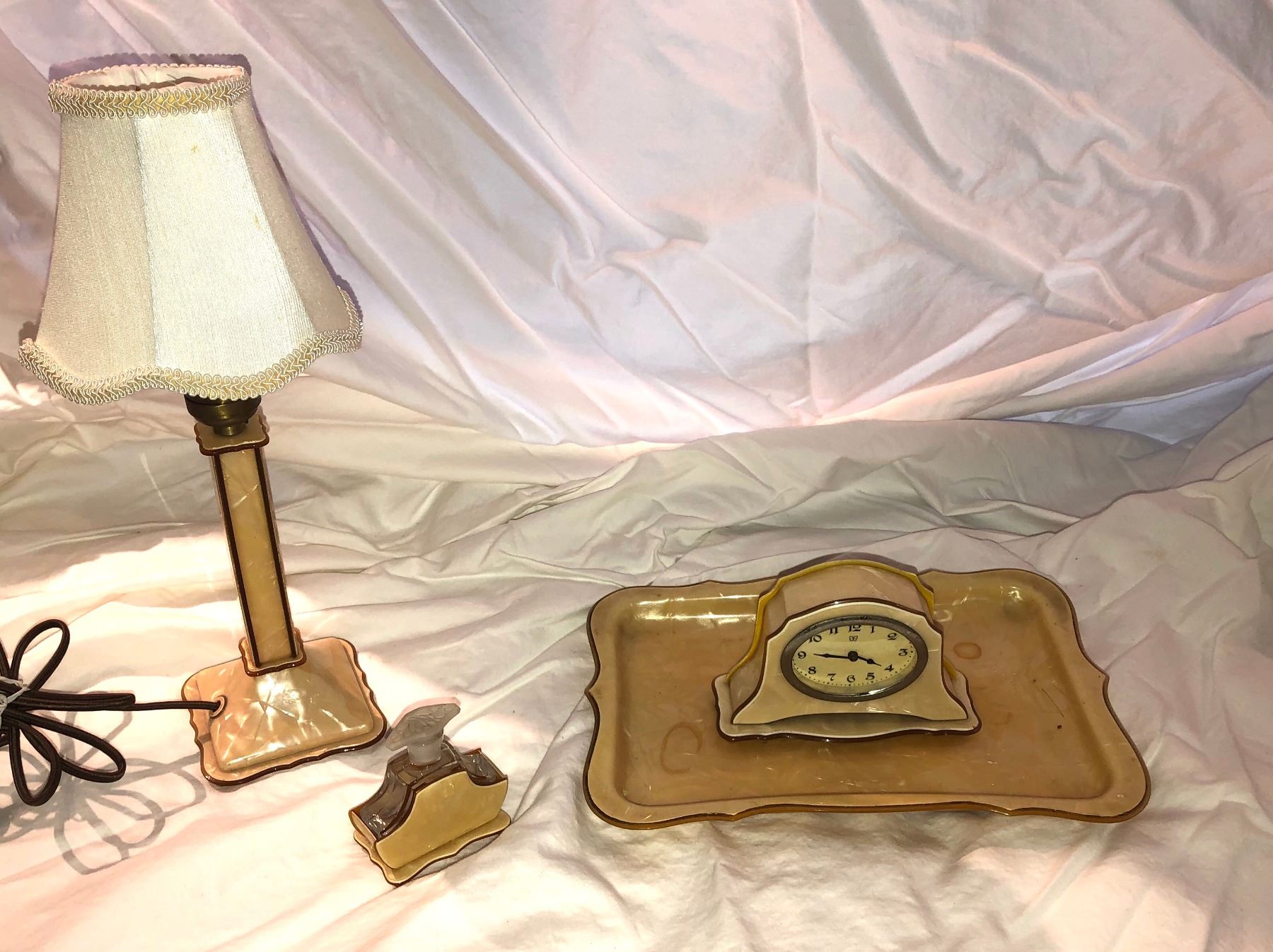 INCLUDES BOUDOIR LAMP, PURFUME BOTTLE, CLOCK