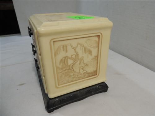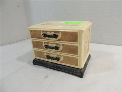 VINTAGE BAKELITE ORIENTAL CHILD'S 3 DRAWER DRESSER. INTRICATE PATTERN. AS SHOWN. VIEW PICTURE FOR DETAIL.