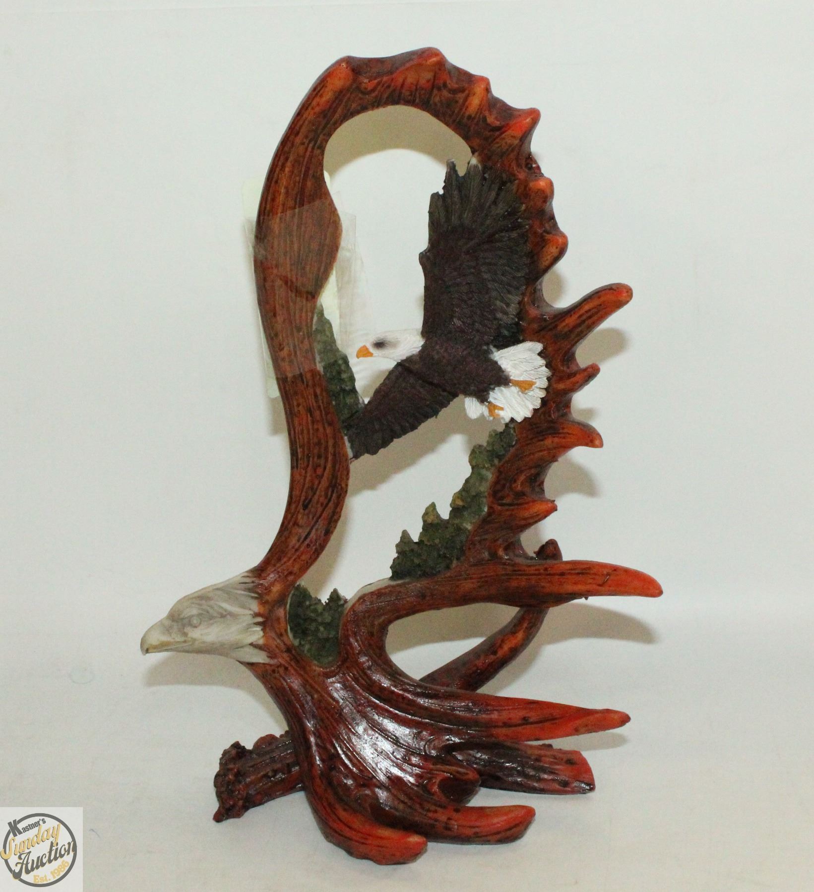 VINTAGE BALD EAGLE/ELK HORN FIGURINE RESIN 9  TALL