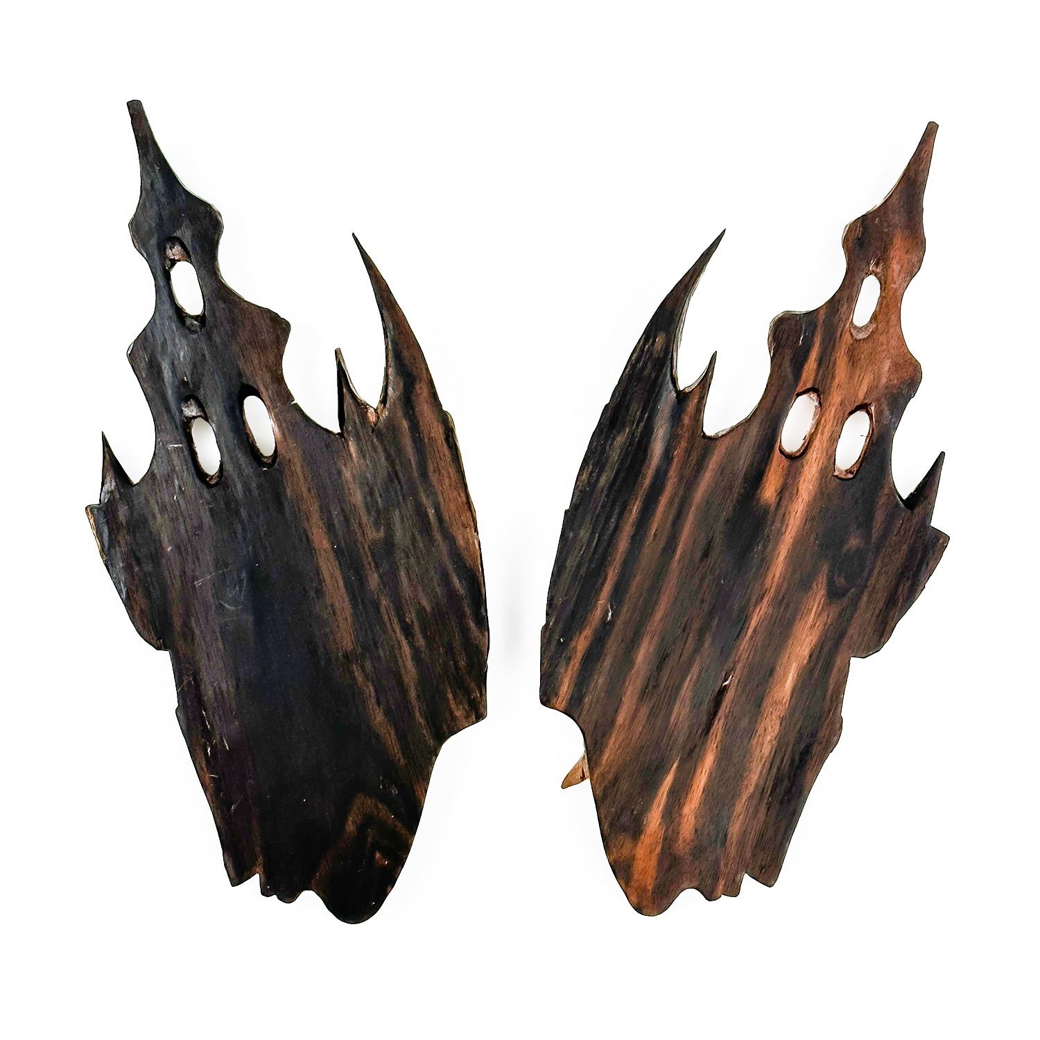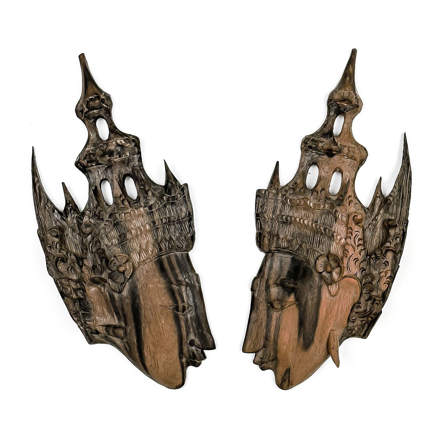 #8351 - HAND CRAFTED BALINESE WALL PLAQUE WOOD CARVINGS. THEY MEASURE: 9” (23 CM) HIGH BY 4” (10 CM) WIDE