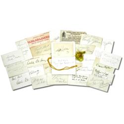 <b>1376. VINTAGE BAND LEADERS</b> Good lot of 28 pieces, primarily cards and slips of paper bearing the signatures (many in pencil) of 1930s band leaders. The lot includes the signatures of <b>CAB CALLOWAY</b>, <b>FREDDY MARTIN</b>, <b>FLETCHER HENDERSON</b>, <b>TOMMY DORSEY</b>, <b>BILLY PIERCE</b>, <b>OZZIE NELSON</b>, <b>HENRY BUSSE</b> & <b>MEL HALLET</b> (pencil signatures in a nice 1936 Cornell University Dance Book), <b>GLEN GRAY</b>, <b>DOC PAYTON</b>, <b>HAL KEMP</b> and many others. Some cards have been trimmed, some bear staples and tape stains, overall the collection is in very good condition.<b>$150-200</b>