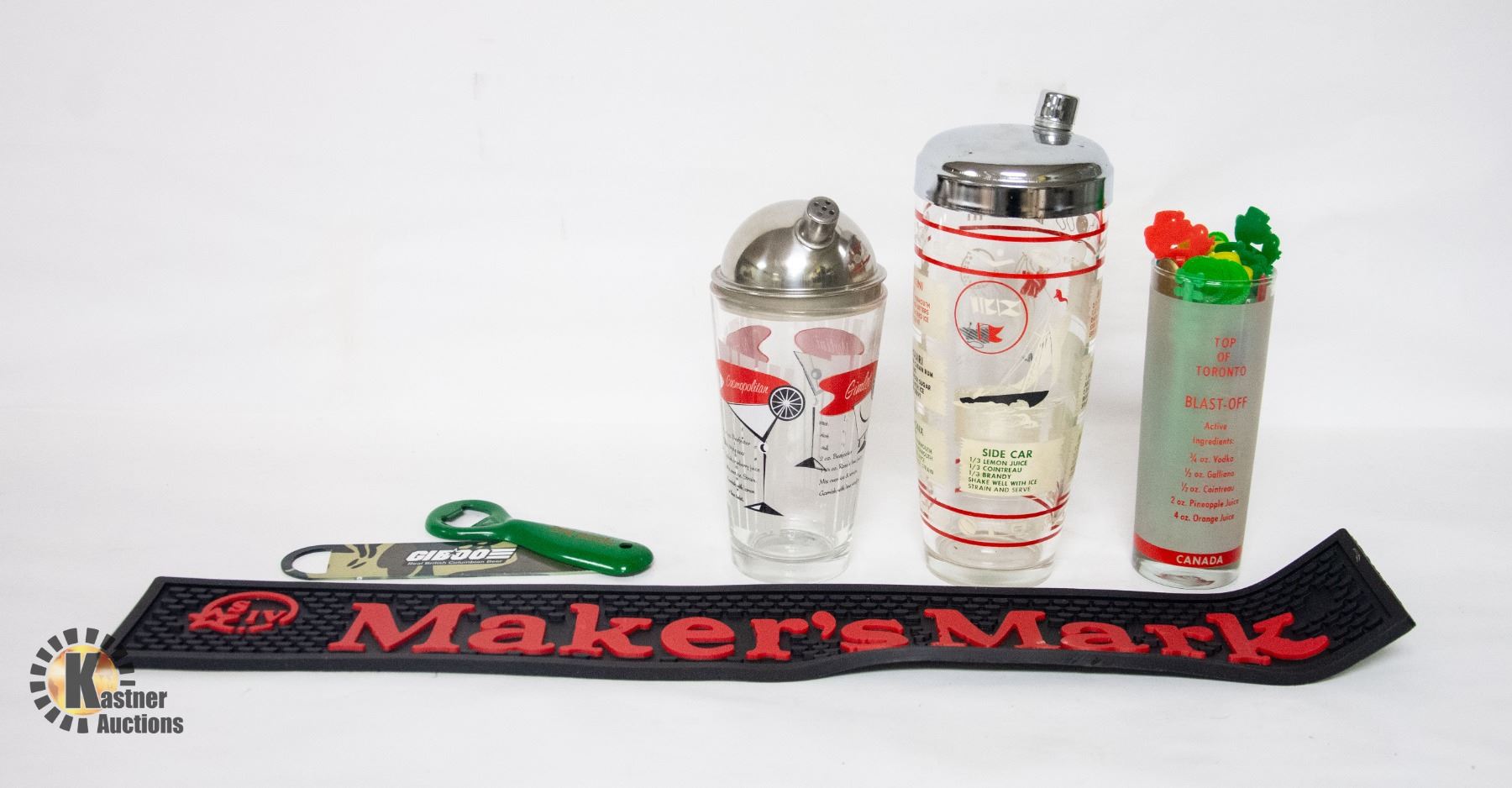 COCKTAIL SHAKERS, VINTAGE STIR STICKS ETC.
