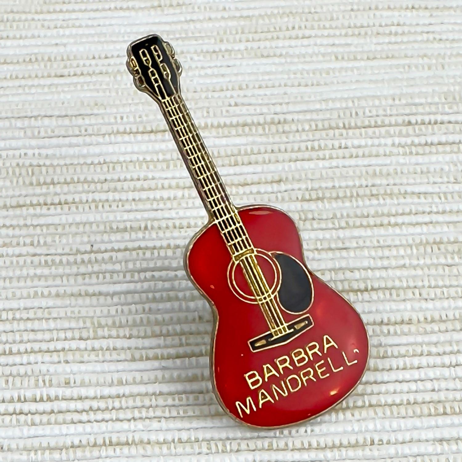 #8808 - AMERICAN COUNTRY MUSIC SINGER AND MUSICIAN BARBRA MANDRELL - METAL RED GUITAR UNMARKED LAPEL PIN