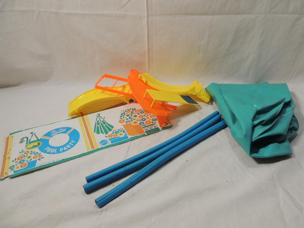BARBIE POOL PARTY SET. MATEL POOL ACCESSORIES. DOLL POOL. AS SHOWN. SEE PHOTO FOR MORE DETAILS.