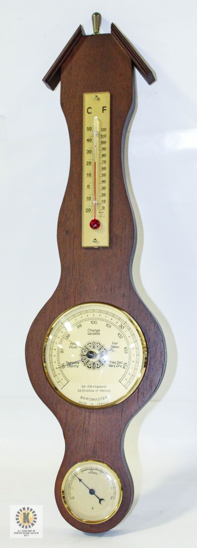 WOOD WALL WEATHER STATION MADE IN FRANCE **ALL ITEMS MUST BE REMOVED BY 5PM SATURDAY, MARCH 22ND 2025. ALL REMAINING ITEMS WILL BE SUBJECT TO A $6.00 PER DAY STORAGE CHARGE. ANY ITEMS REMAINING AFTER MONDAY, APRIL 7TH 2025 WILL BE CONSIDERED FORFEITED. NO REFUNDS WILL BE ISSUED FOR FORFEITED ITEMS. TO SCHEDULE A PICK UP APPOINTMENT CLICK HERE