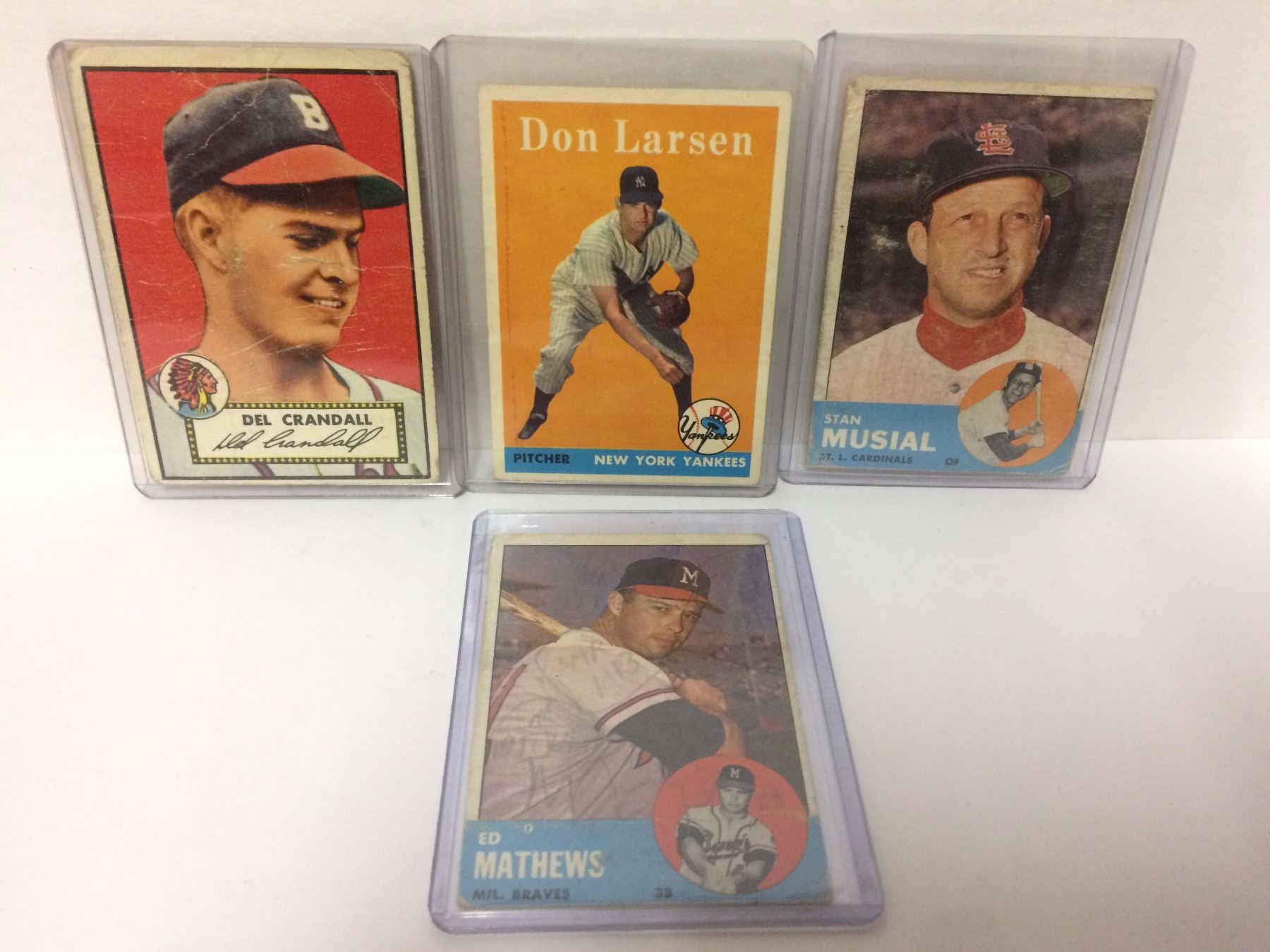 VINTAGE BASEBALL TRADING CARD LOT (CRANDALL, LARSEN, MATHEWS, MUSIAL)